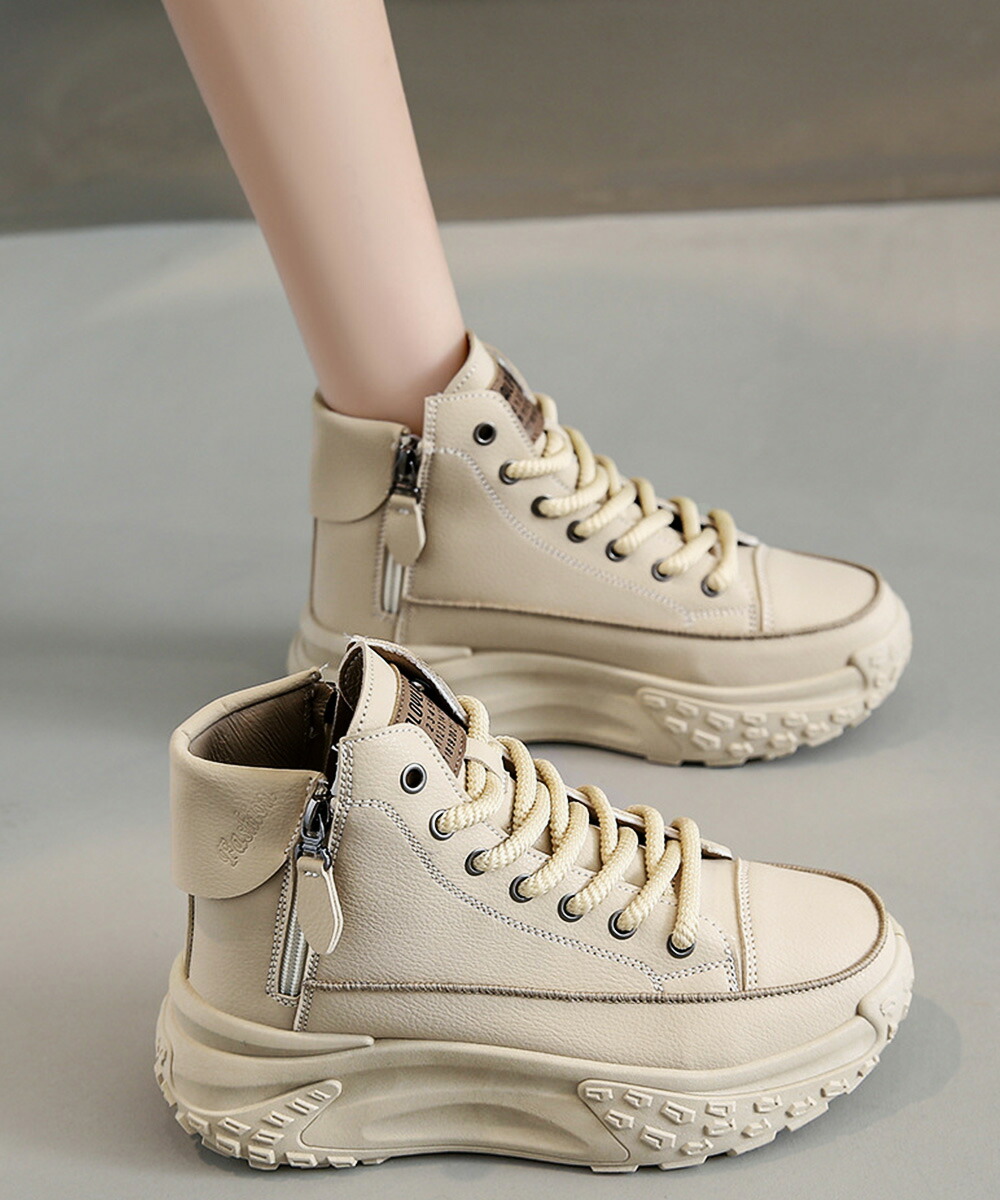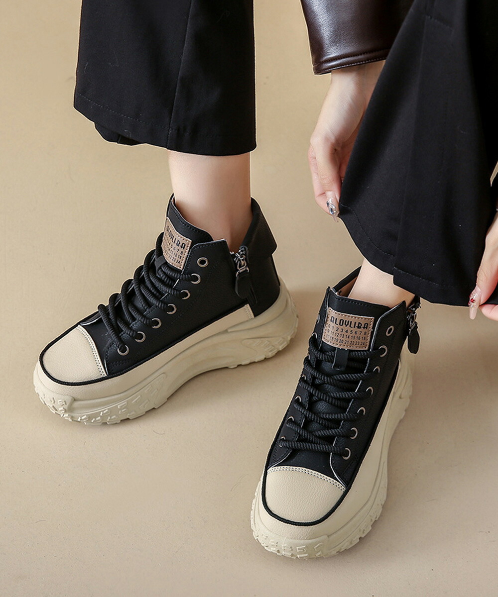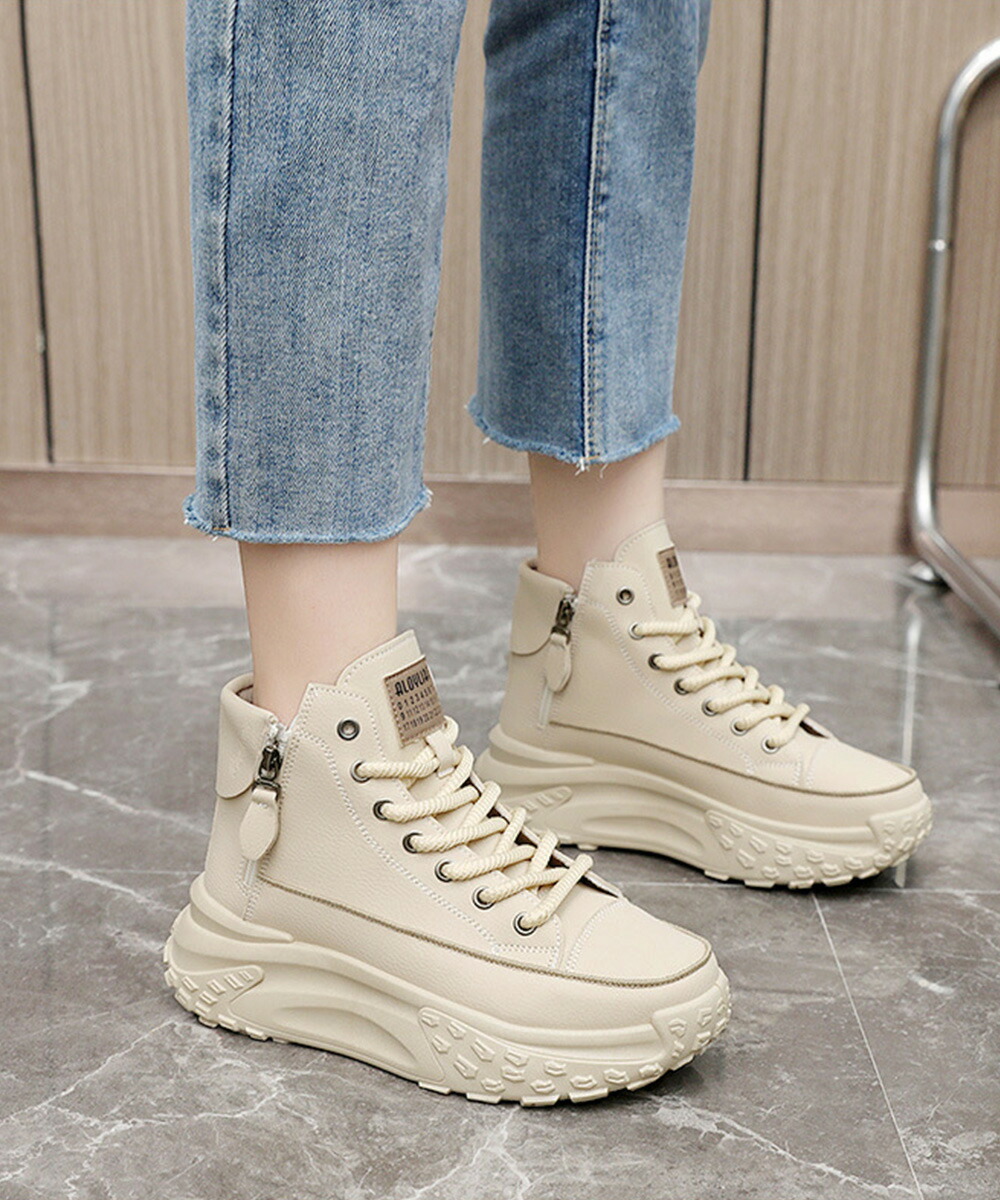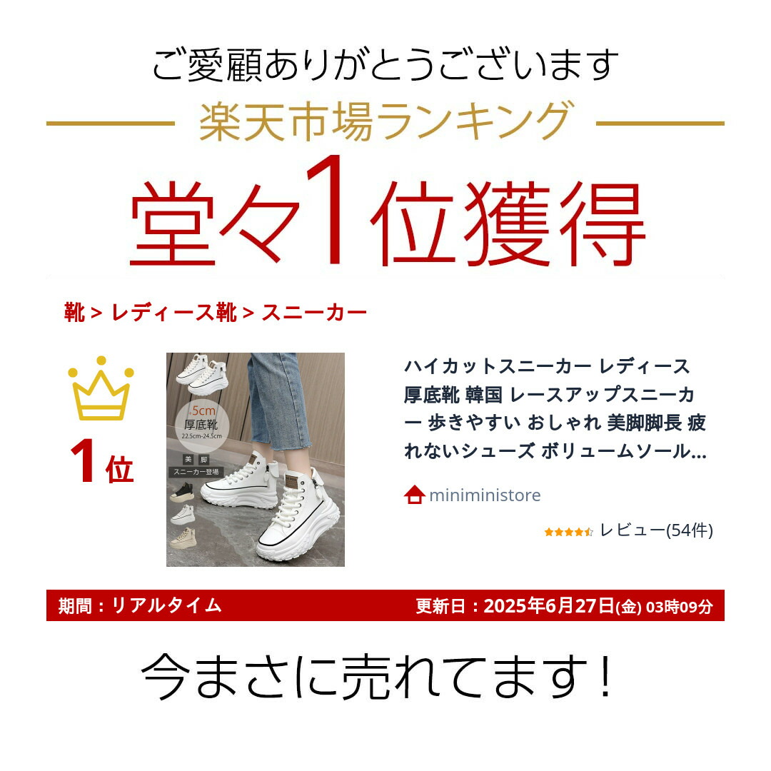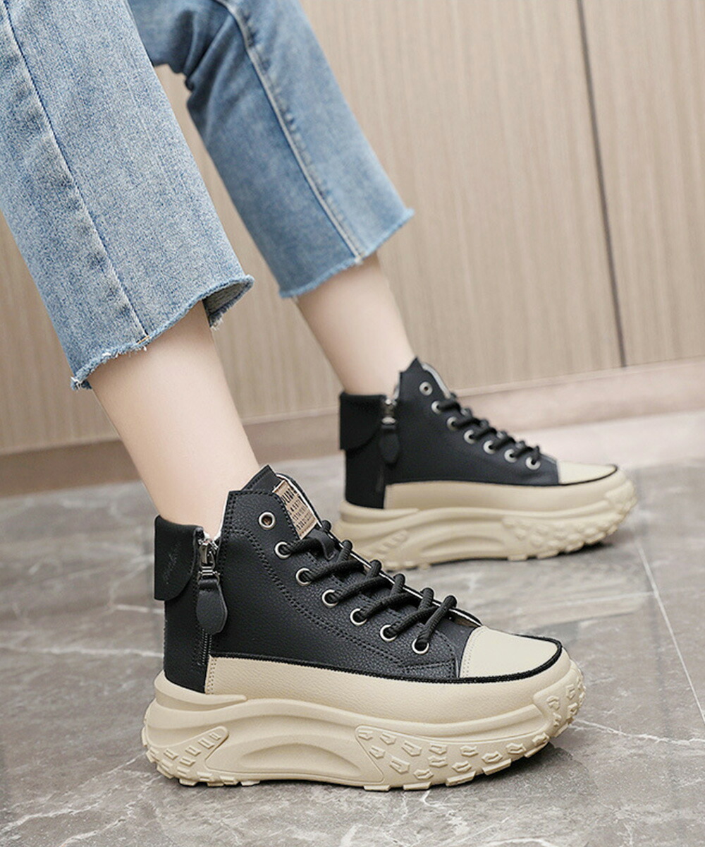 ハイカットスニーカー レディース 厚底 靴 通販 ブラック ベージュ ホワイト 22.5cm(35) 23.0cm(36) 23.5cm(37) 24.0cm(38) 24.5cm(39)