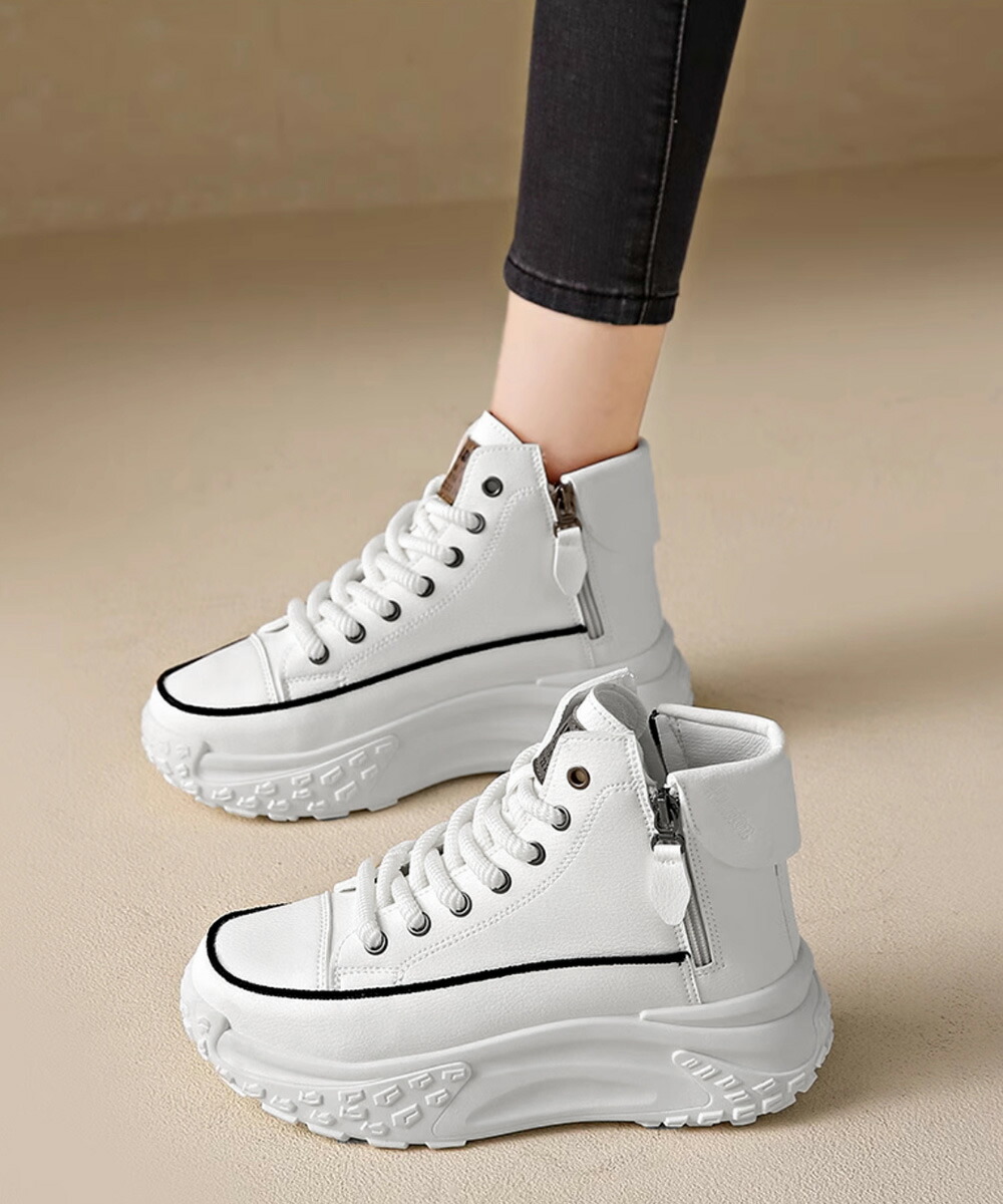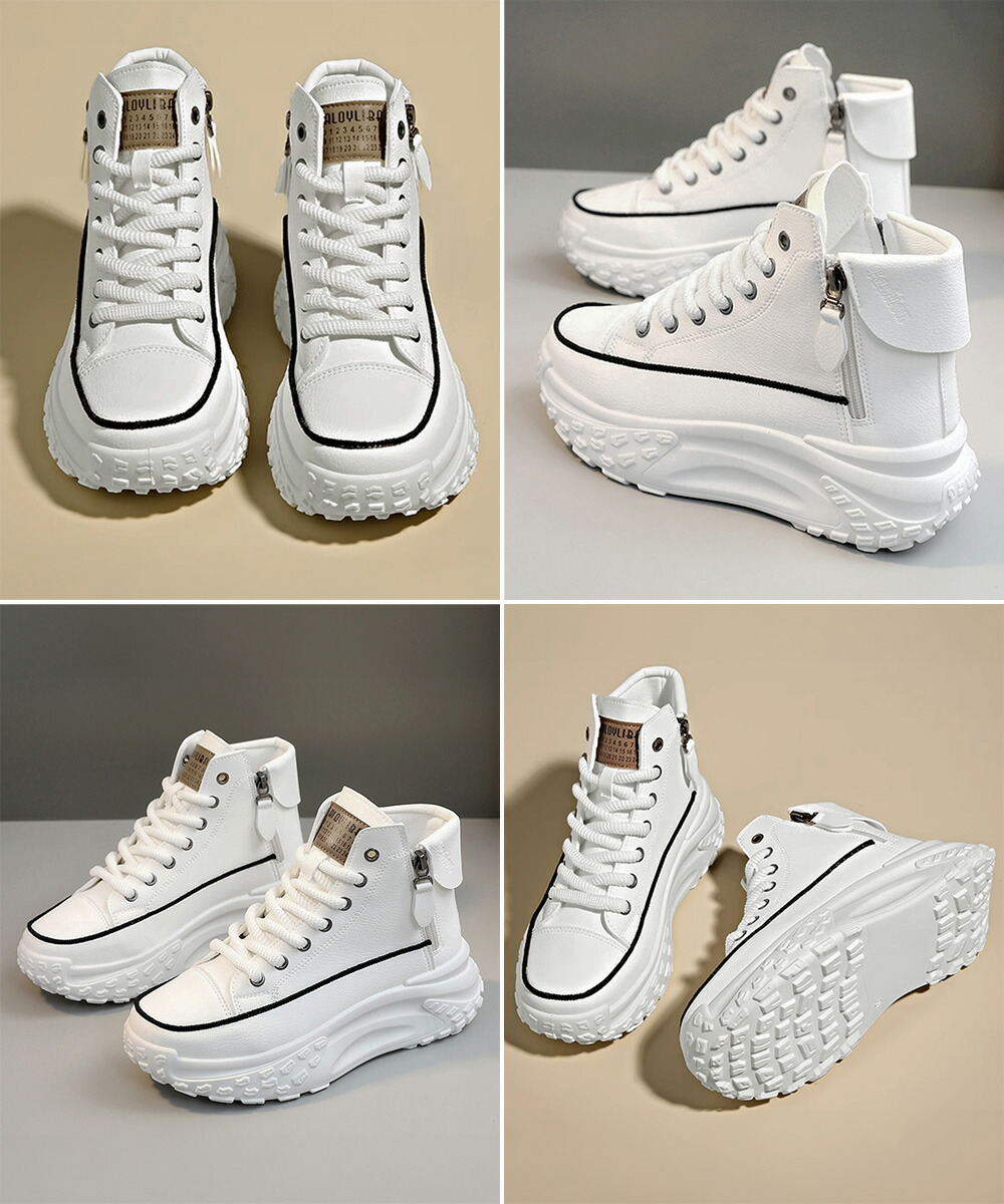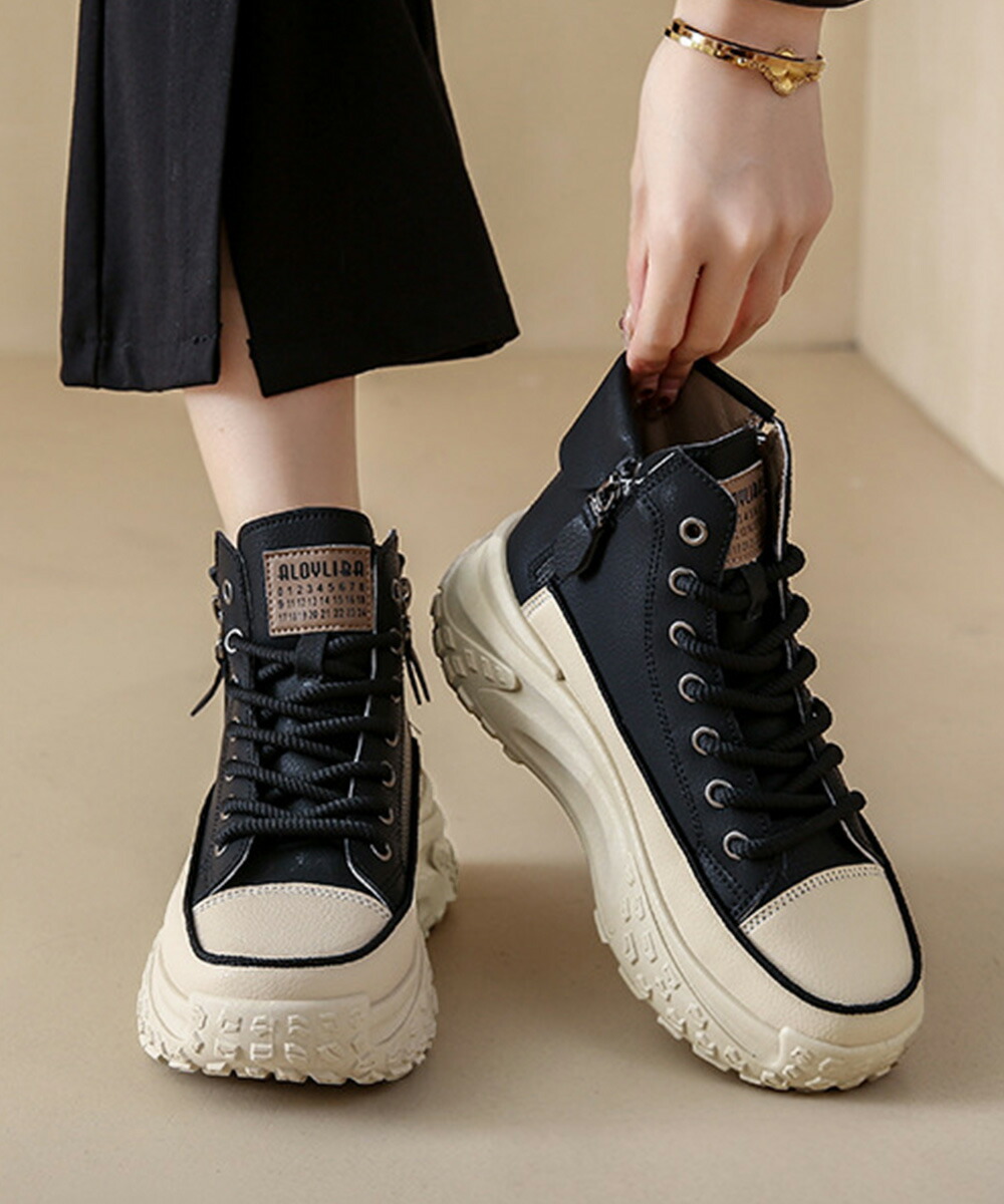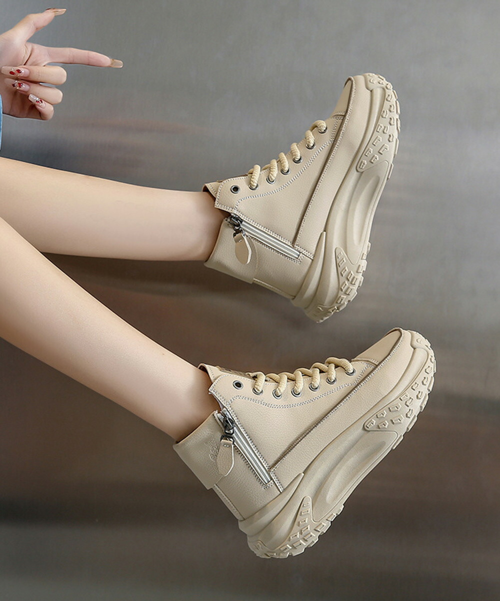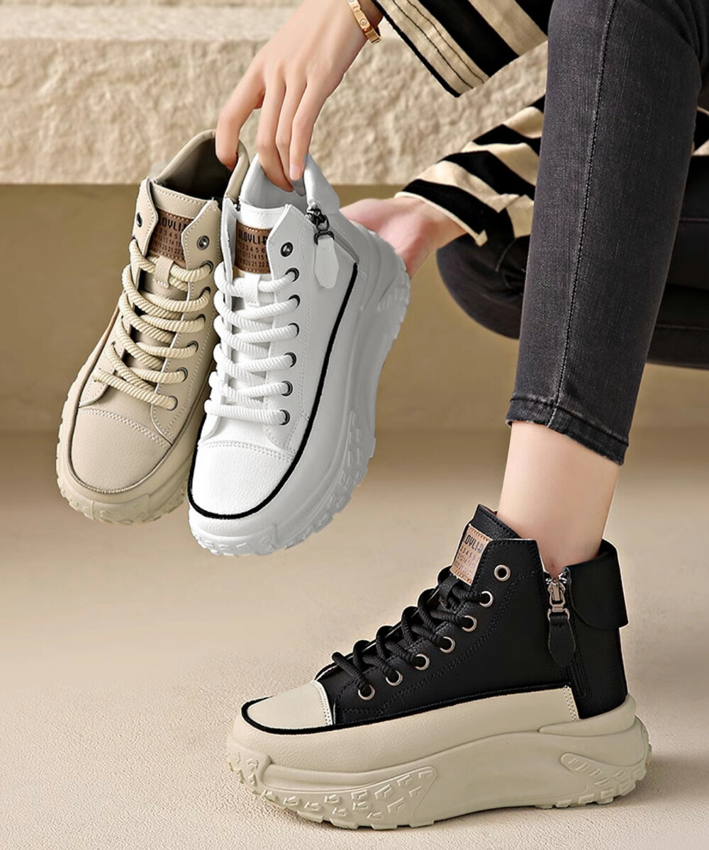 ハイカットスニーカー レディース 厚底 靴 通販 ブラック ベージュ ホワイト 22.5cm(35) 23.0cm(36) 23.5cm(37) 24.0cm(38) 24.5cm(39)