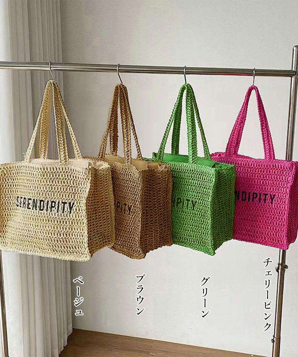 ストローバッグ トート かごバッグ韓国 バッグ レディースバッグ かごバッグ 超目玉商品 グリーン チェリーピンク ブラウン ベージュ