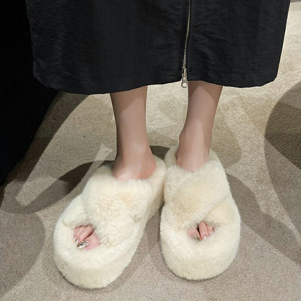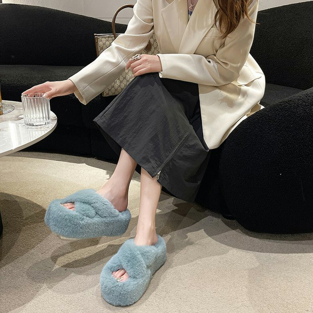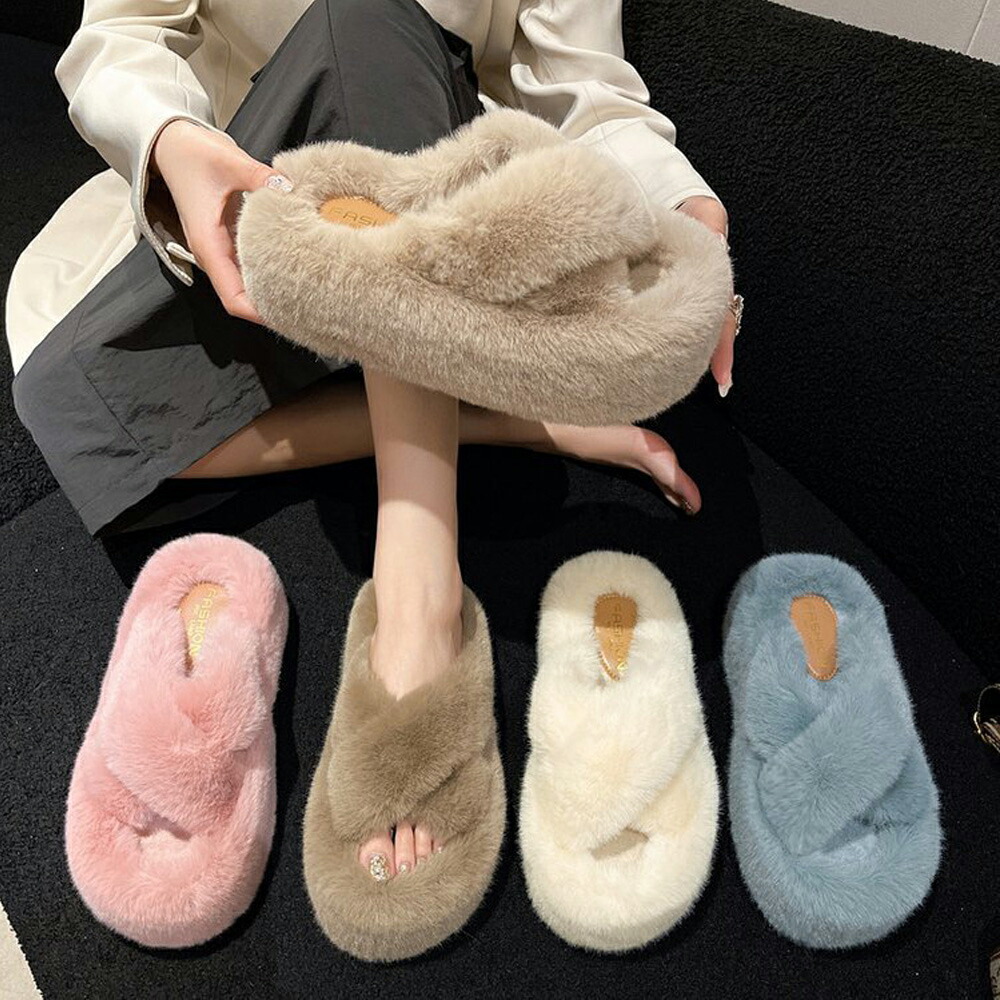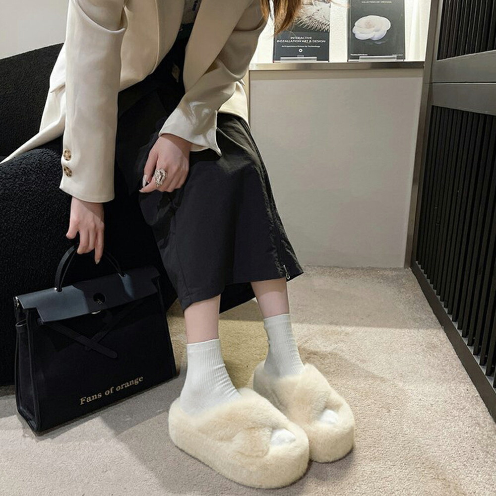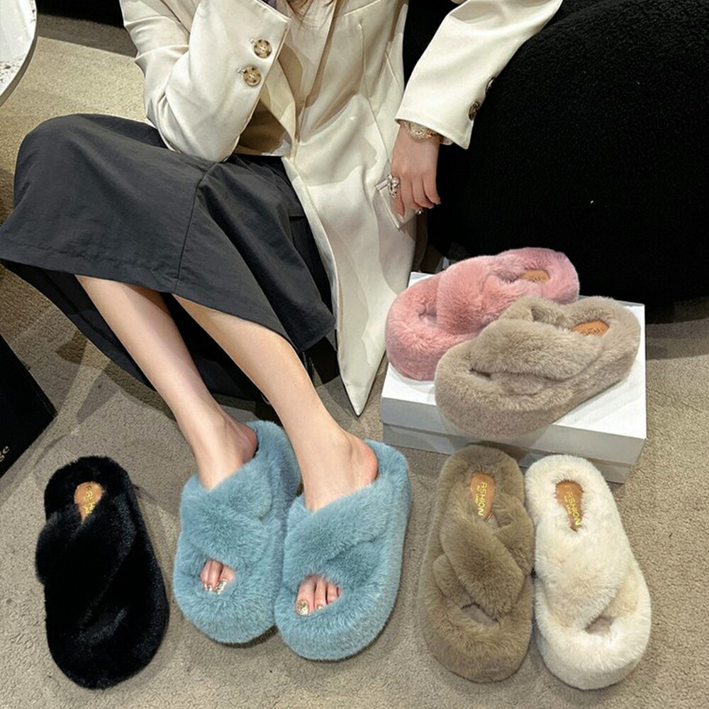 ファーサンダル 厚底 韓国ファースリッ 靴 早い者勝ち アイボリー ブラック モカベージュ ライトピンク ライトブラウン ライトブルー 22.5cm(35) 23.0cm(36) 23.5cm(37) 24.0cm(38) 24.5cm(39)