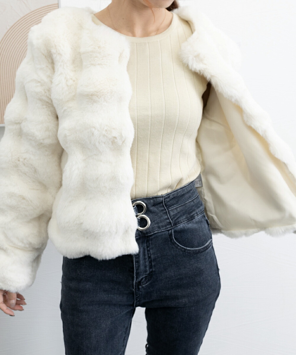 エコファーコートショートファージャケッ コート ジャケット 豊富な品揃え アイボリー ブラック