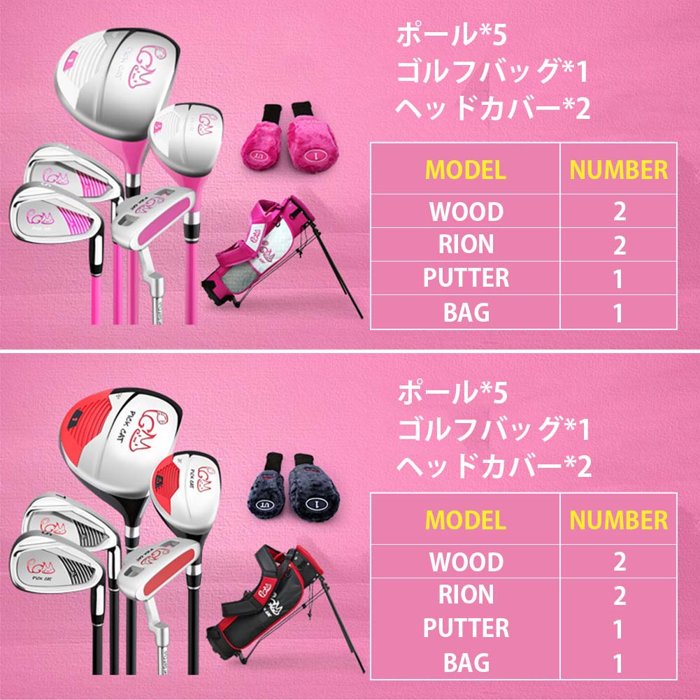 ジュニアゴルフセット 子ども用 ゴルフ ゴルフ トレーニング用具 パッティング練習 豊富 ブラック ピンク イエロー
