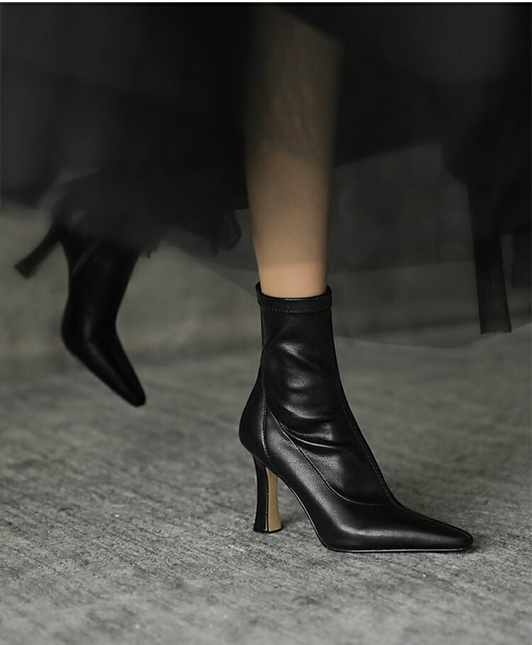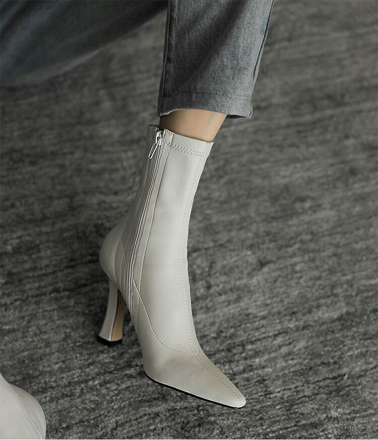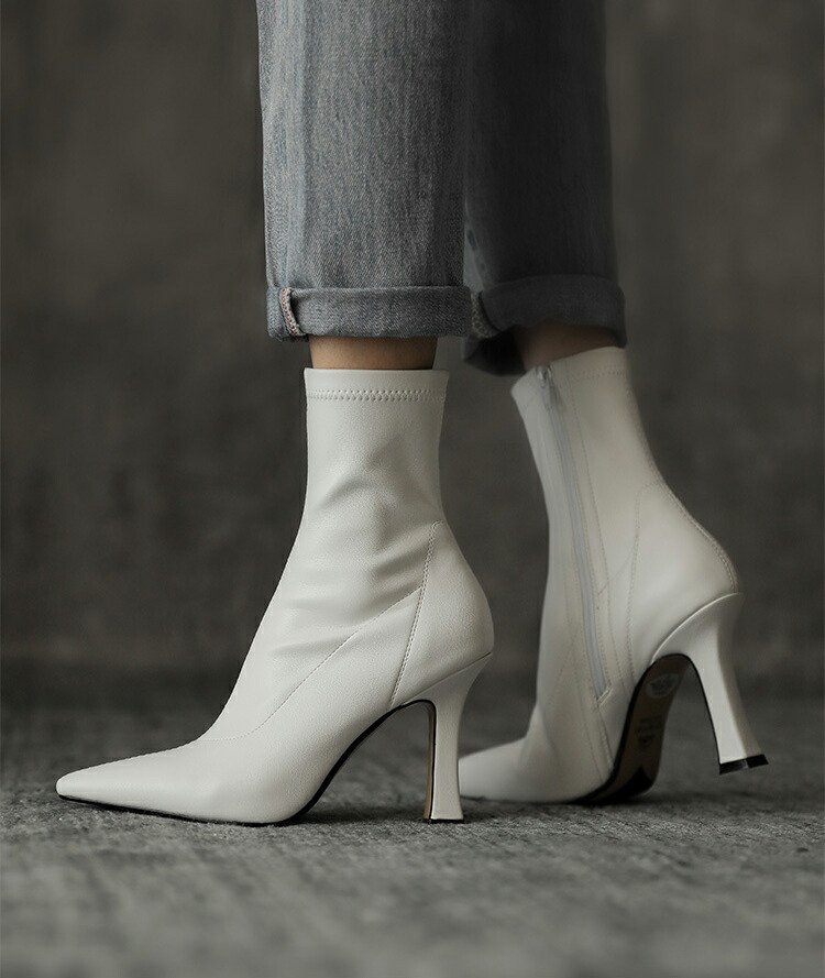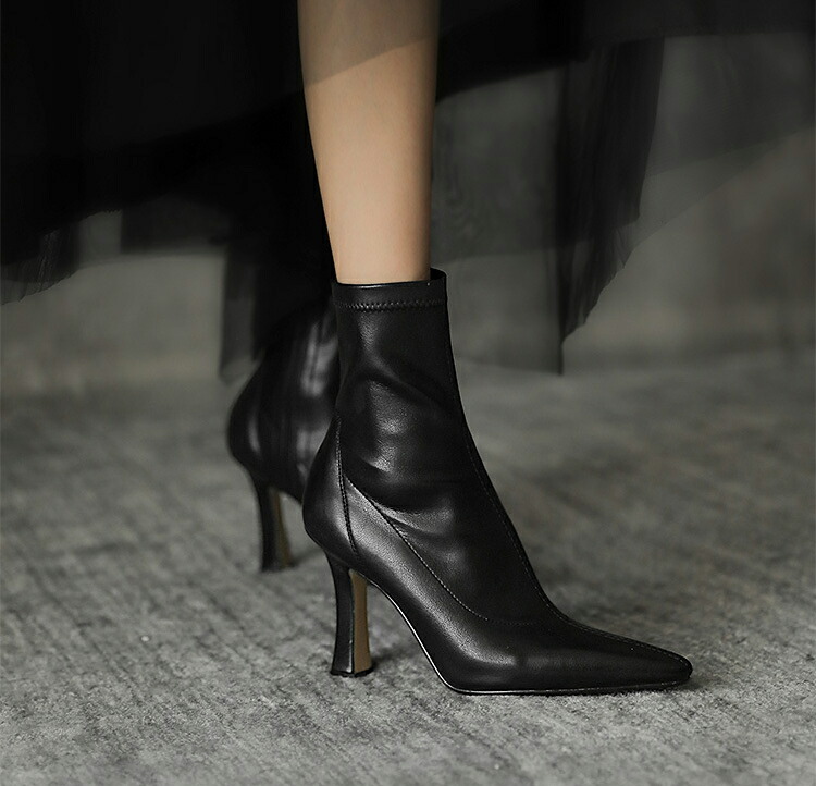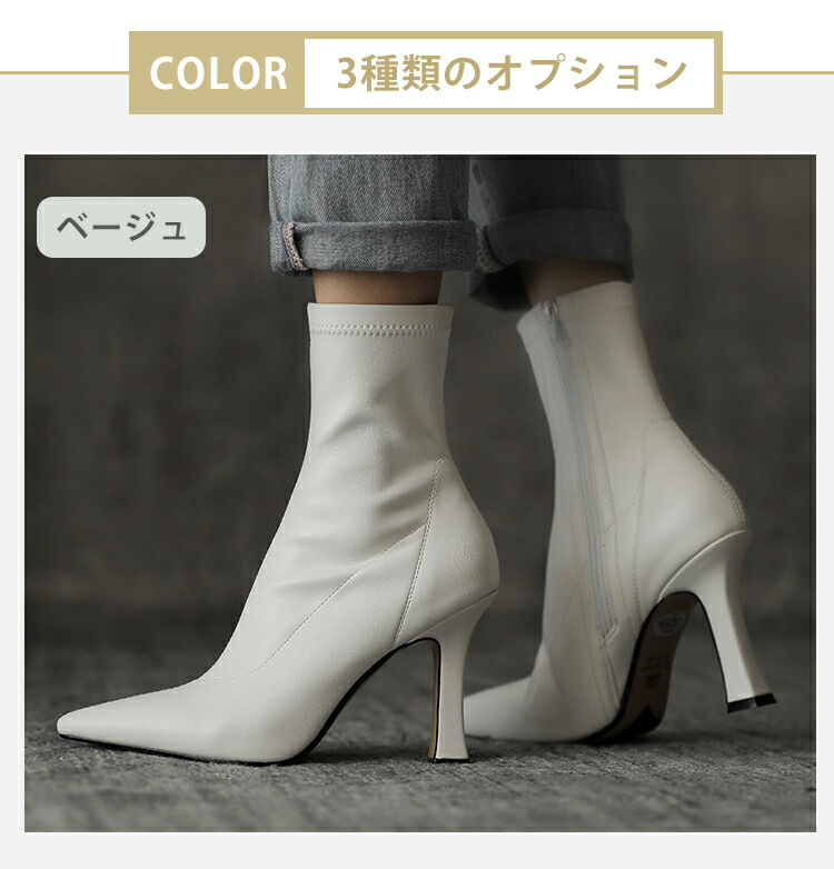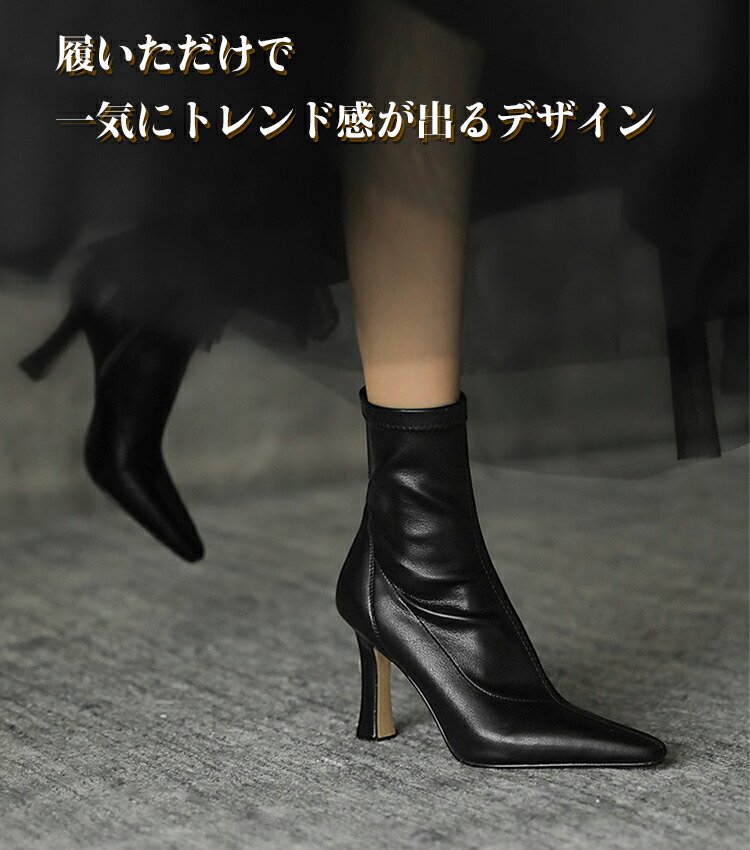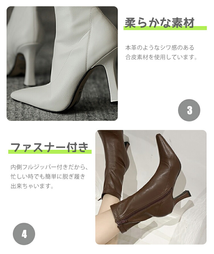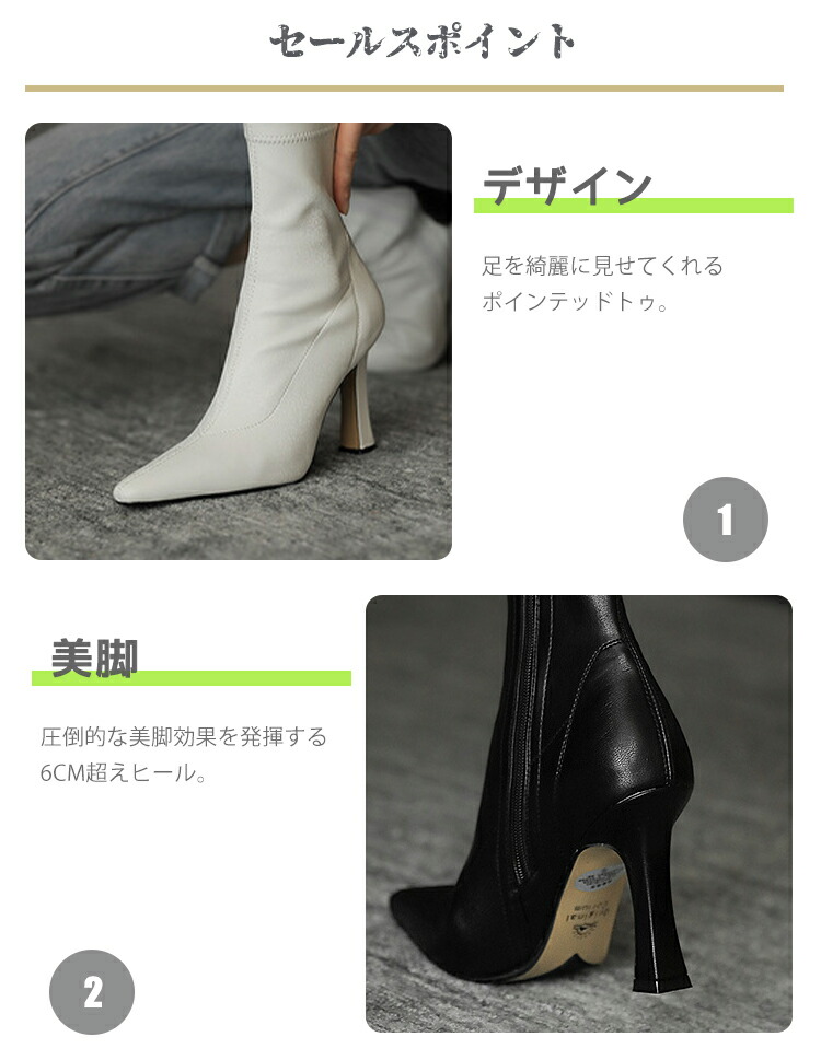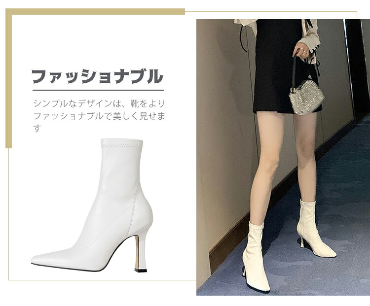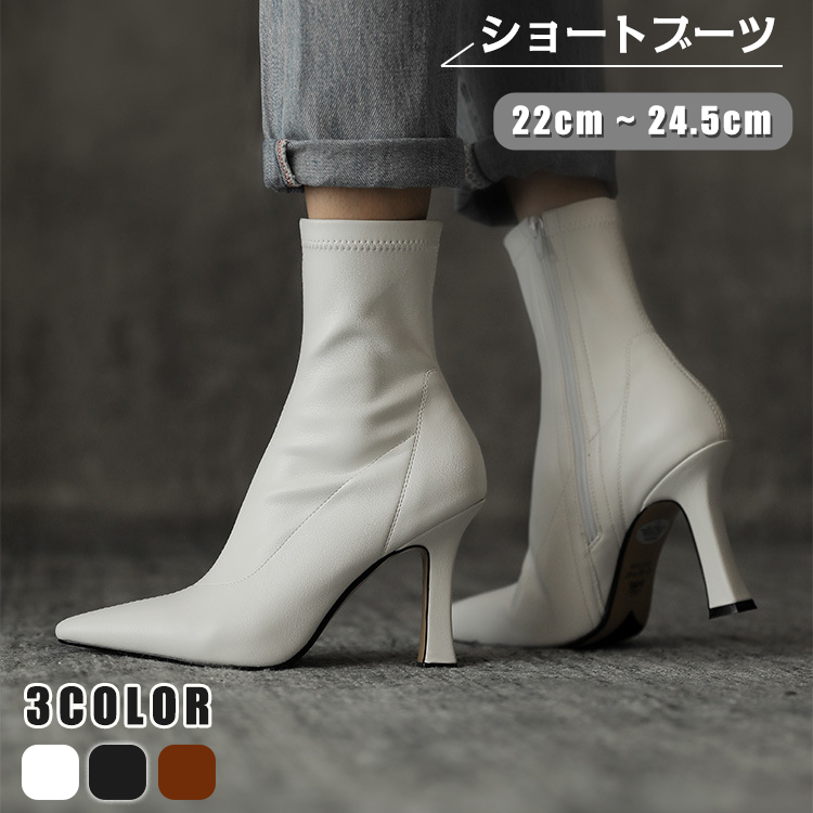 ショートブーツ ヒール レディース 歩きやすい 黒 白 22-24.5cm ヒールブーツ ブーツ ピンヒール 秋 ハイヒール 疲れない 疲れにくい ショート 秋冬 靴 ブーティー 細身 通勤 ブーティ