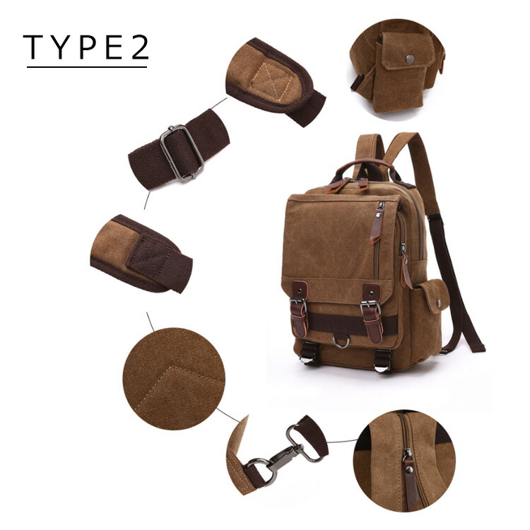 ボディバッグ リュック 2way リュ バッグ 小物 ブランド雑貨 豊富な品揃え TYPE1 TYPE2 ブラック ブルー グレー オリーブ ブラウン カーキ ネイビー ワイン