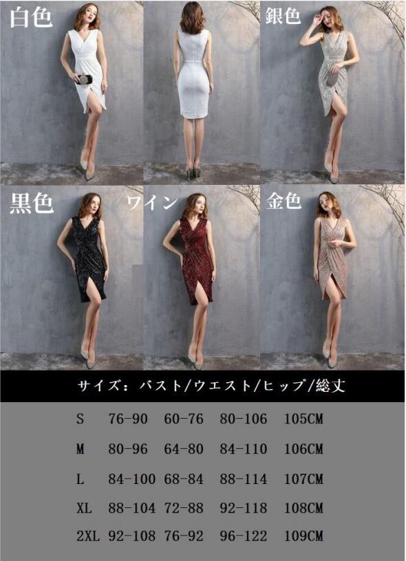 Vネック ワンピース レディース S~ レディースファッション 新登場! 黒色 白色 ワイン 金色 銀色 S M L XL 2XL