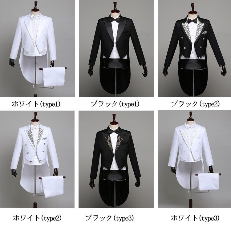 タキシード 4点セット スーツ メンズ スーツ セットアップ 礼服 豊富な品揃え ホワイト(type1) ブラック(type1) ホワイト(type2) ブラック(type2) ホワイト(type3) ブラック(type3) 身長165cm&体重50kg適用 身長170cm&体重62kg適用 身長175cm&体重67kg適用 身長180cm&体重87kg適用 身長185cm&体重100kg適用