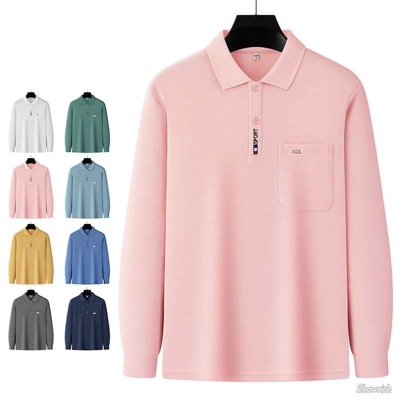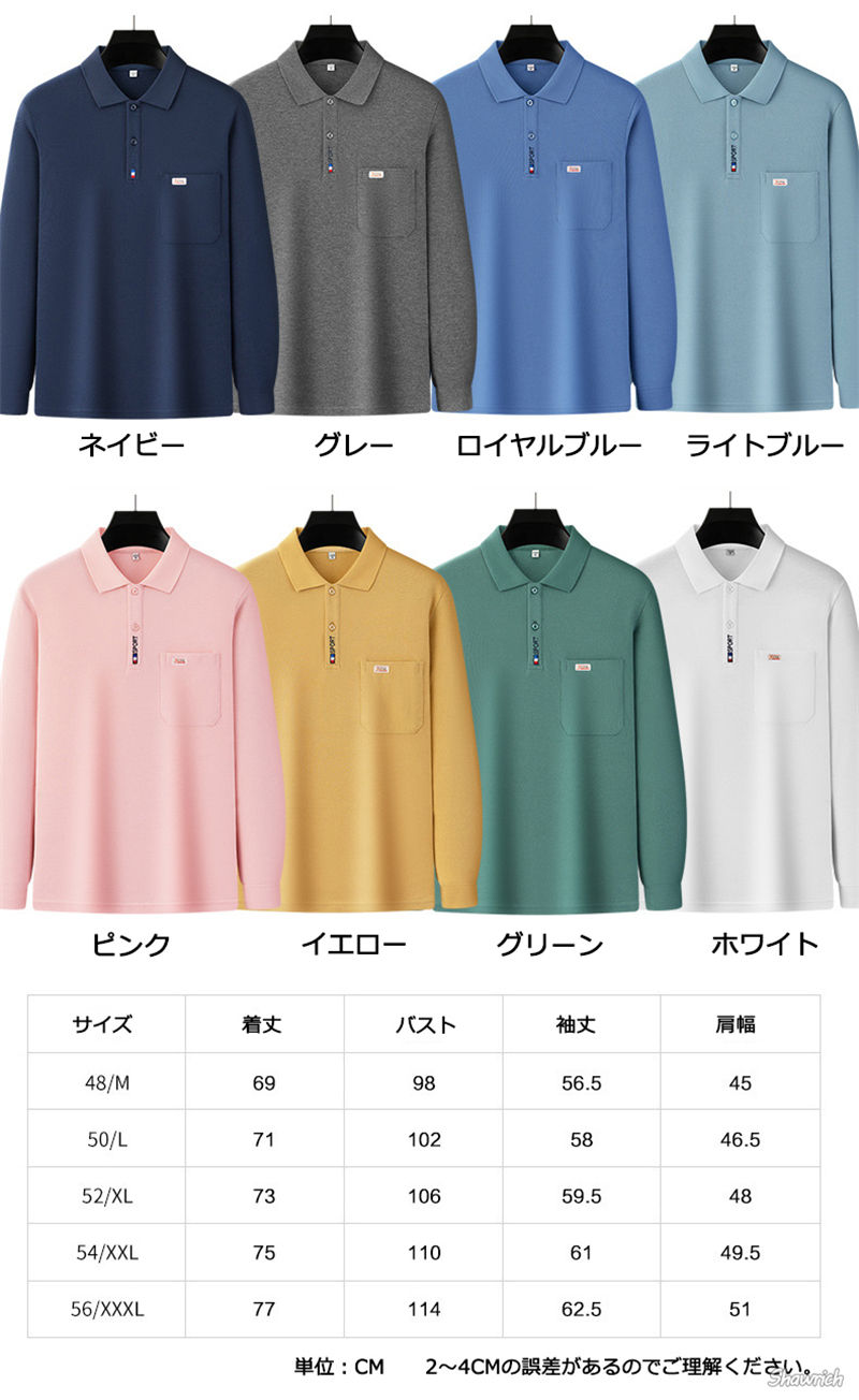 100%綿 長袖 ポロシャツ メンズ トップス ポロシャツ 特集 ホワイト ロイヤルブルー ネイビー ピンク グリーン イエロー ライトブルー グレー M L XL XXL XXXL