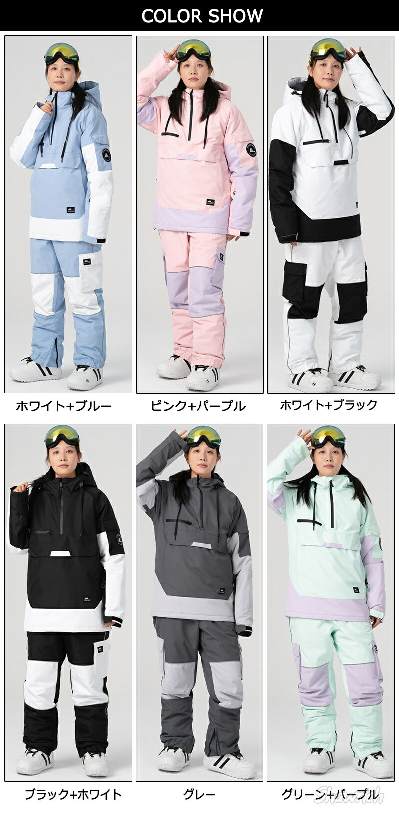スノーボードウェア 上下セット スノボ ウインタースポーツ スノーボード用ウェア レディースウェア 上下セット つなぎ 特集 トップス単品-ホワイト+ブルー トップス単品-ピンク+パープル トップス単品-ホワイト+ブラック トップス単品-ブラック+ホワイト トップス単品-グレー トップス単品-グリーン+パープル ボトムス単品-ホワイト+ブルー ボトムス単品-ピンク+パープル ボトムス単品-ホワイト+ブラック ボトムス単品-ブラック+ホワイト ボトムス単品-グレー ボトムス単品-グリーン+パープル 上下セット-ホワイト+ブルー 上下セット-ピンク+パープル 上下セット-ホワイト+ブラック 上下セット-ブラック+ホワイト 上下セット-グレー 上下セット-グリーン+パープル S M L XL XXL