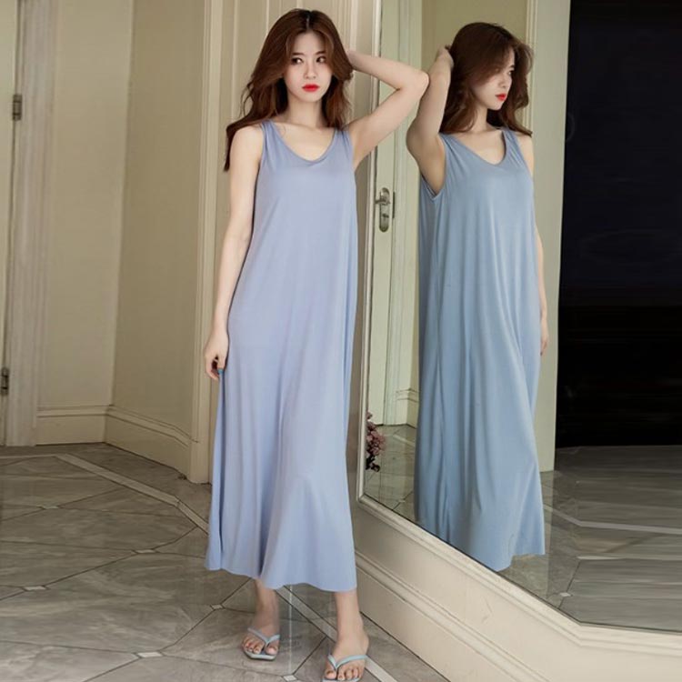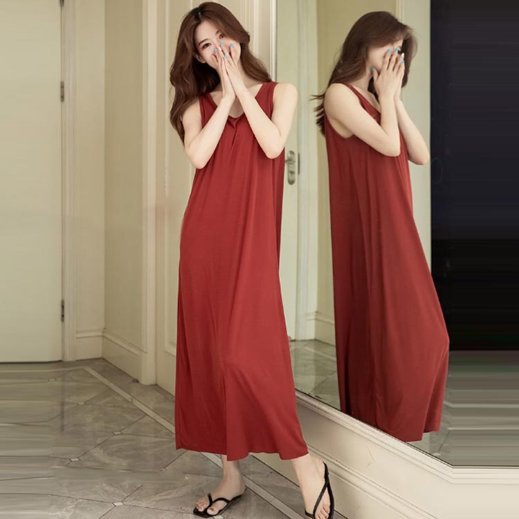 ルームウェア ノースリーブ 薄手 ワン レッド ブラック ブルー M L XL 2XL