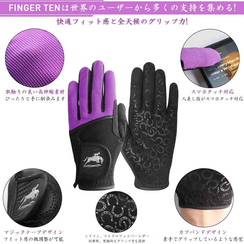 乗馬用グローブ レディース 両手 マイ S M L パープル ピンク ブラック