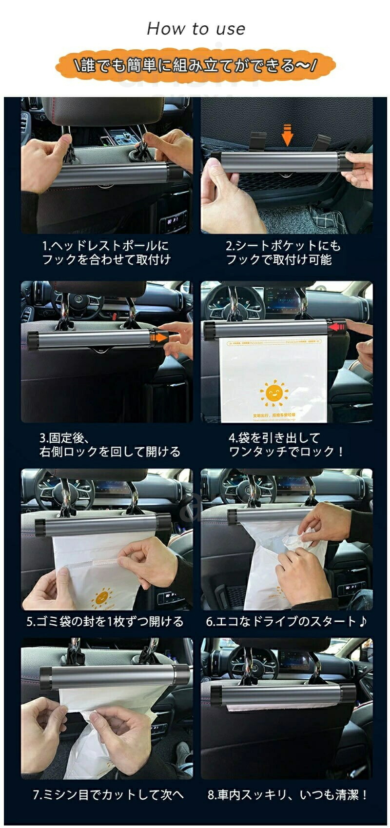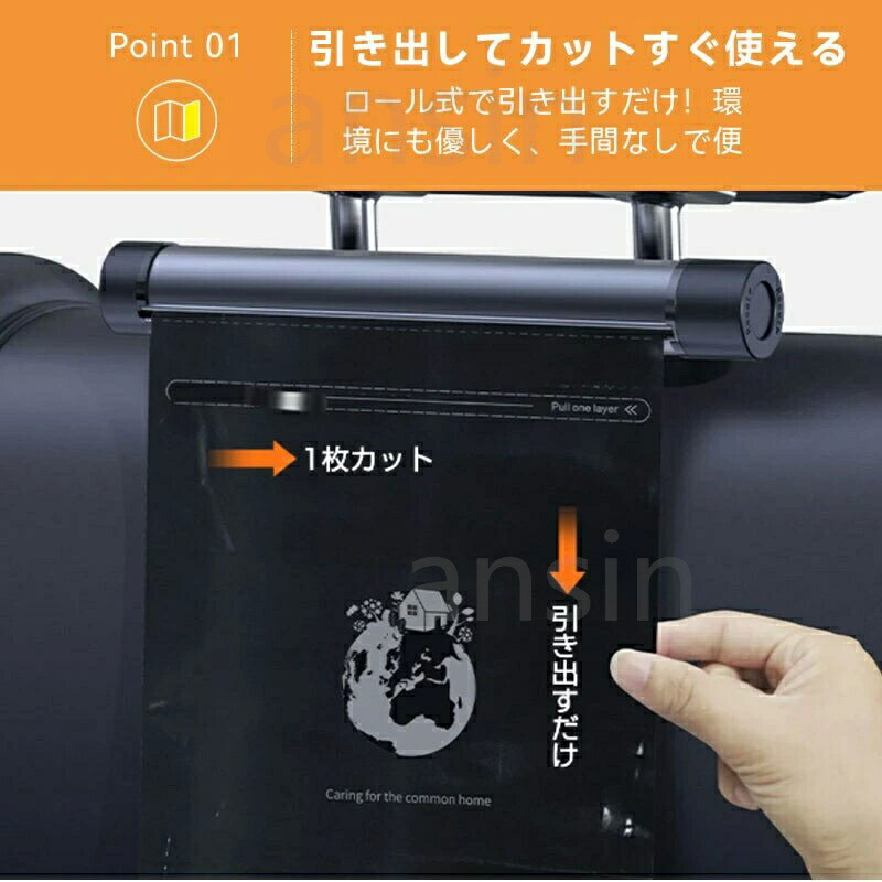 ゴミポケット収納 ローラー式 車載 隠 ブラック グレー ブラック(スマホホルダー付き) グレー(スマホホルダー付き) ビニール単品(ブラック40枚) ビニール単品(ホワイト40枚)