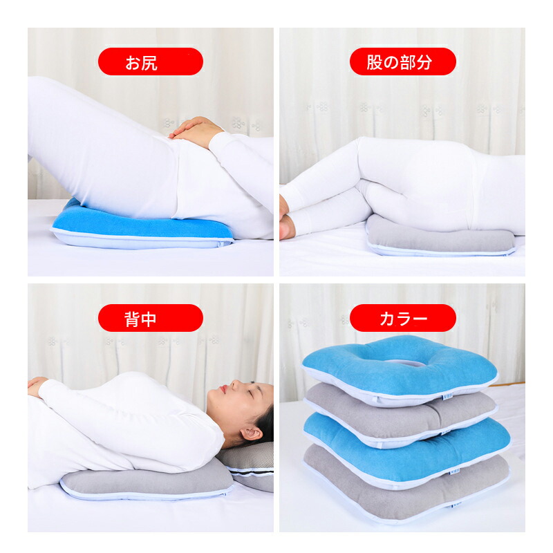 ・適用部位:寝たきりの人が横向き・横になる・座る姿勢の場合に、腰、膝、足首や背中の部位に適しています。 横になる対応部位:背中、尾骨、しり。 横向き対応部位:股の骨、腰骨。