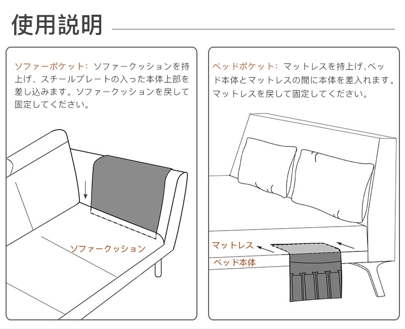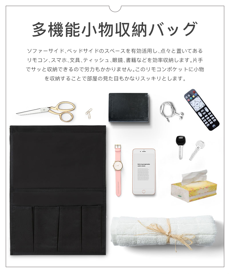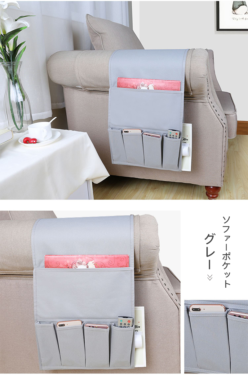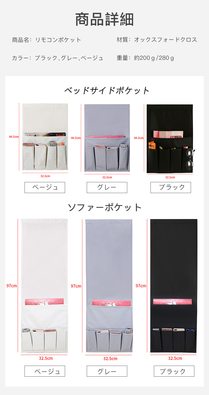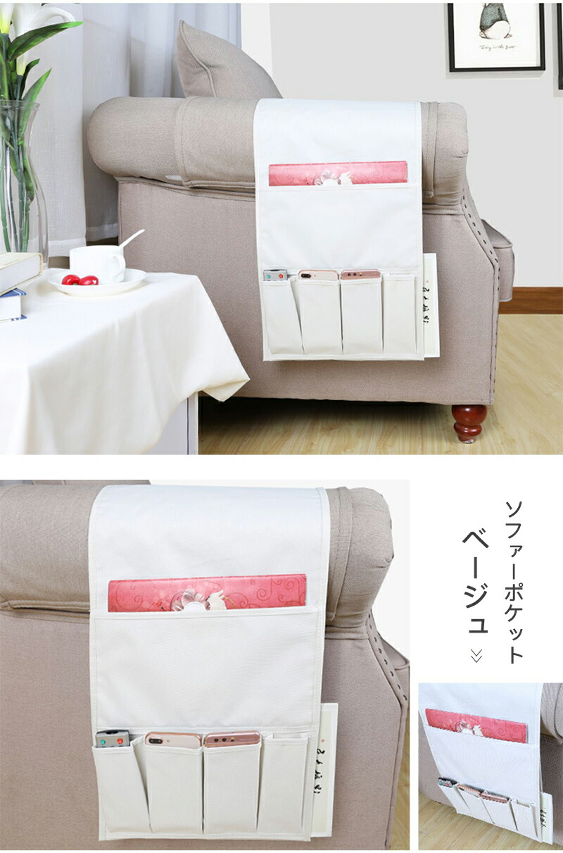 リモコンポケット サイドポケット 収納 ベージュ グレー ブラック 44.5x32.5cm 97x32.5cm