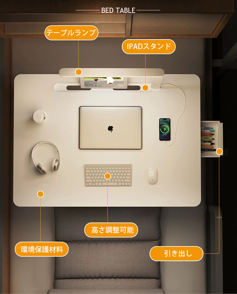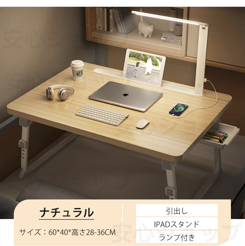 折りたたみデスク ベッドテーブル ベッ ホワイト ブラック ナチュラル 幅60×奥行40 幅70×奥行48