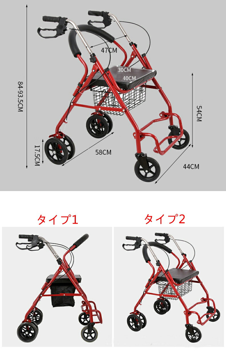 シルバーカー おばあちゃん カート お タイプ1 タイプ2 レッド ブラック