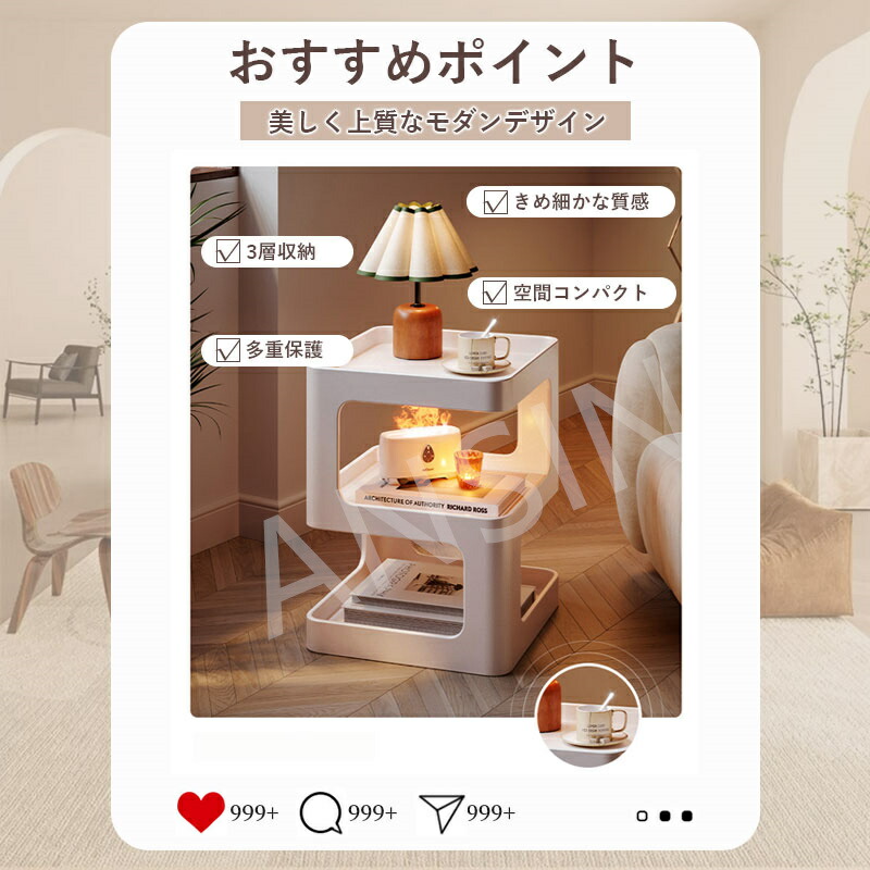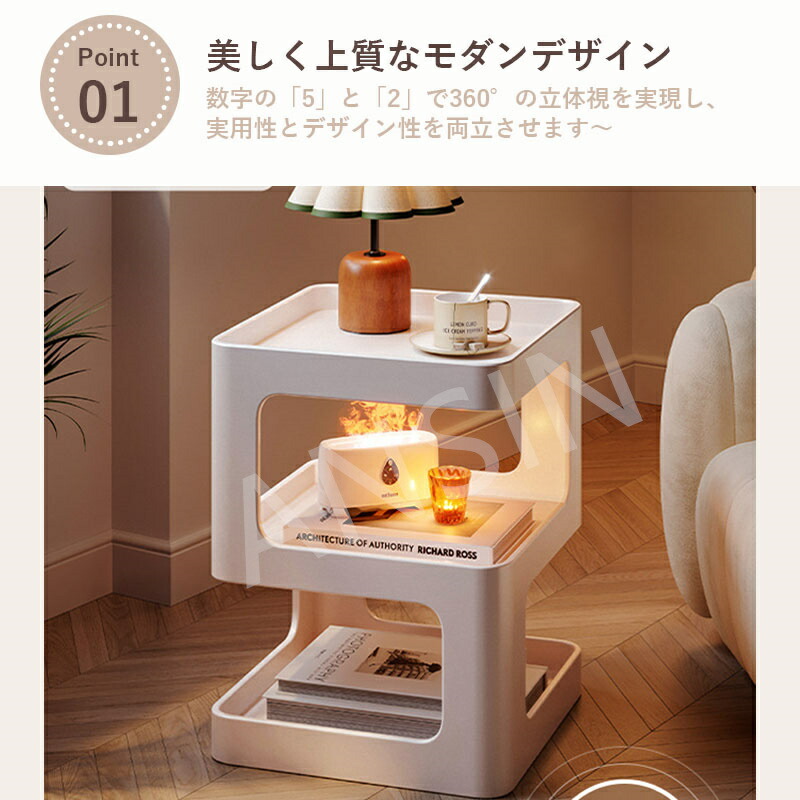 サイドテーブル 多機能 幅55cm オ ホワイト ベージュ ブラック 35×35×55cm 40×40×55cm