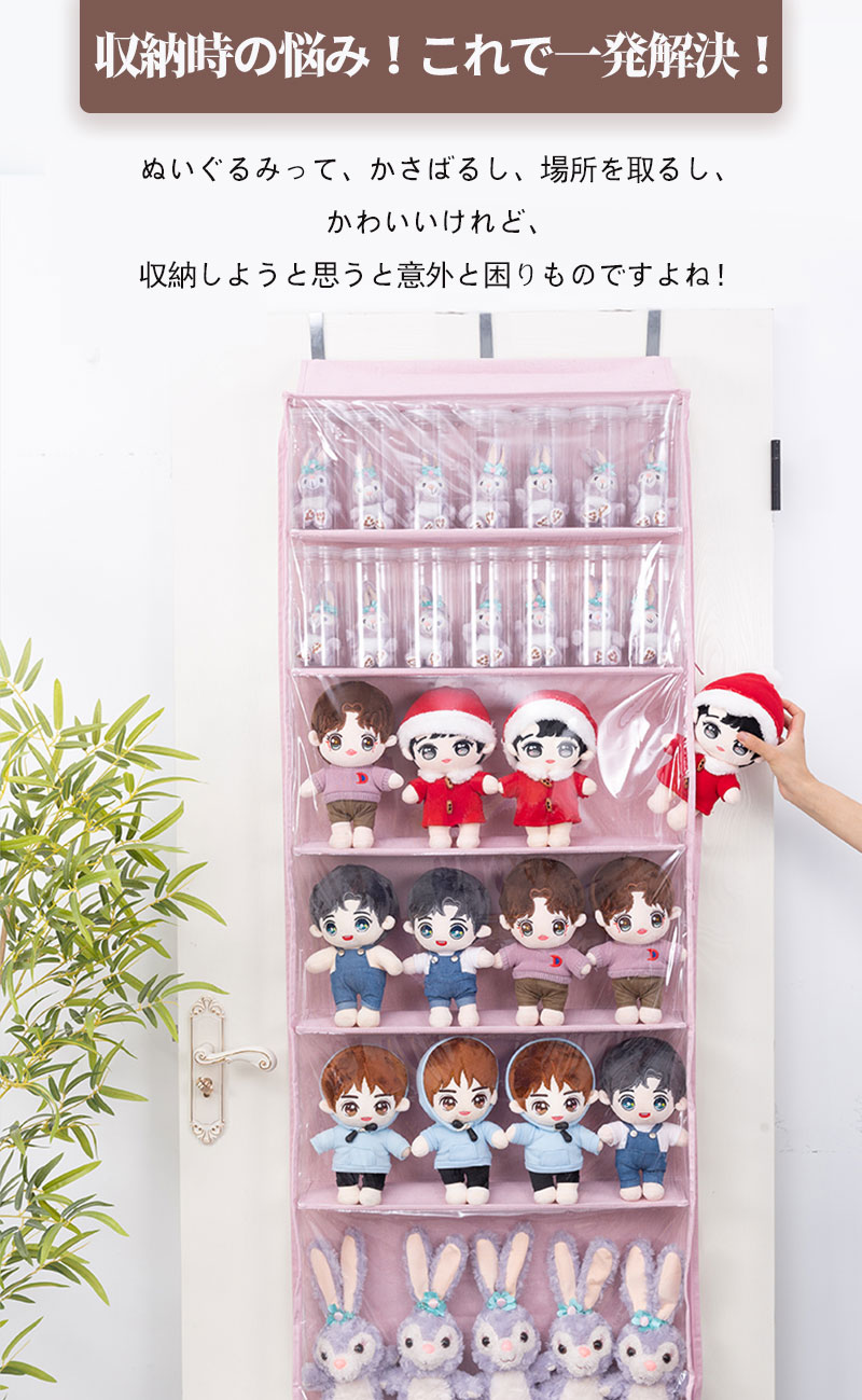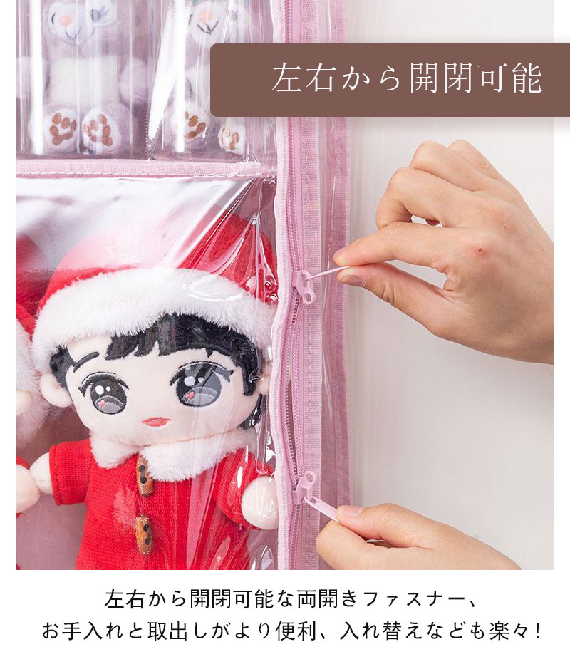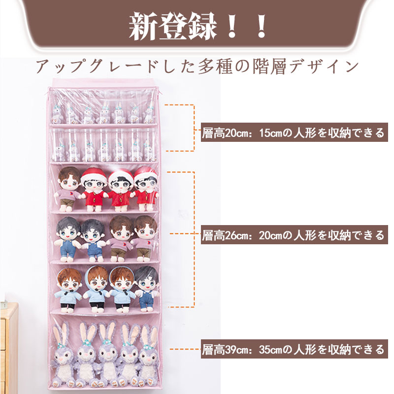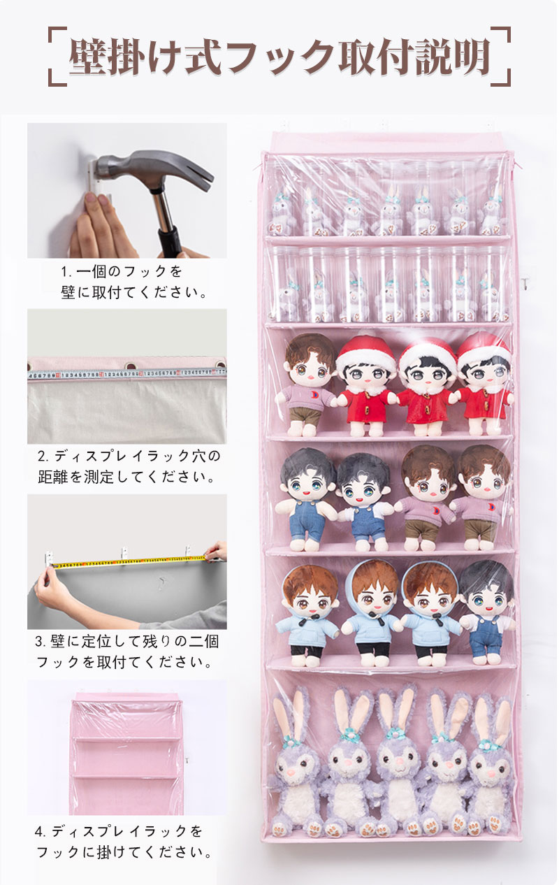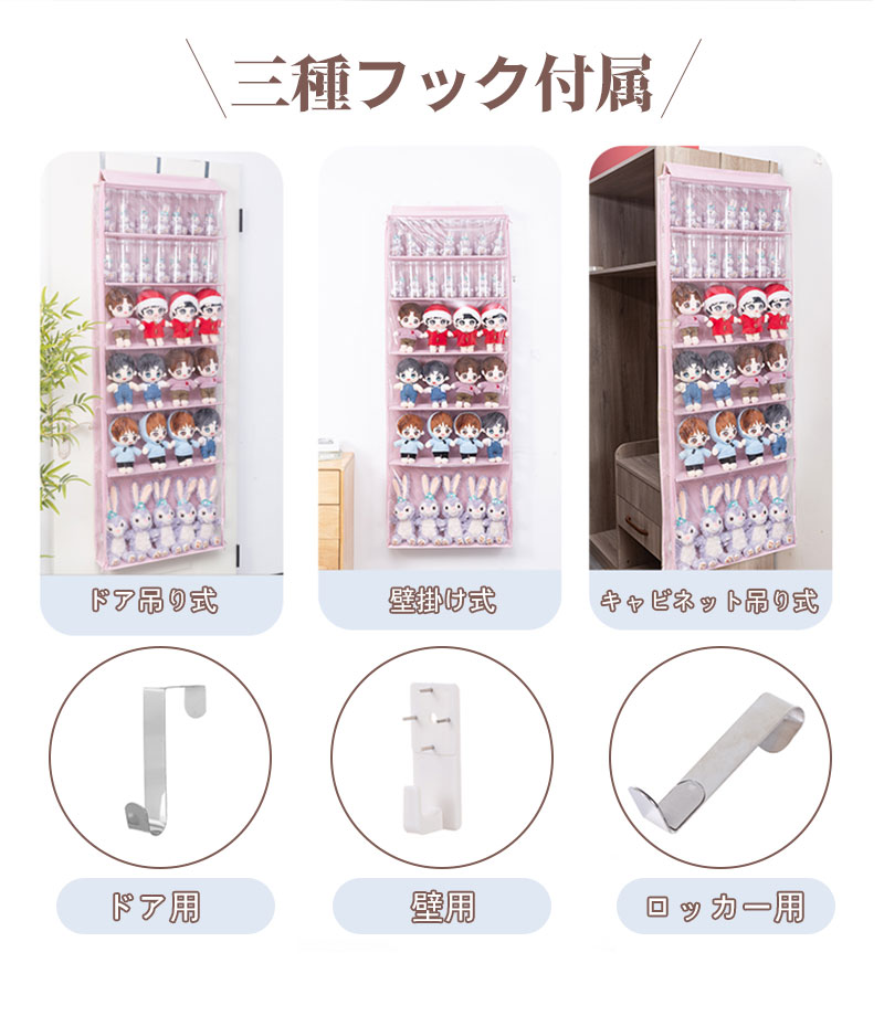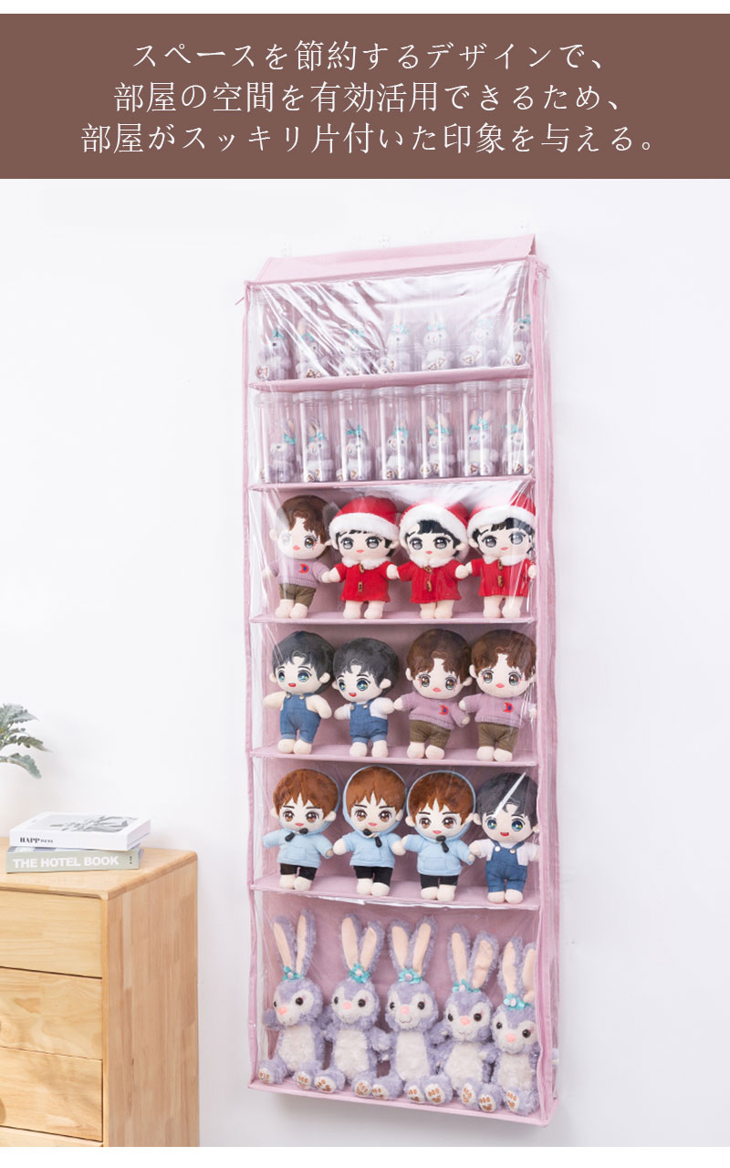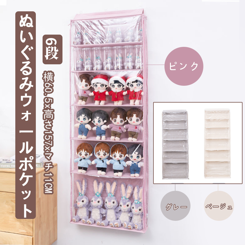 ぬいぐるみウォールポケット ぬいぐるみ ピンク ベージュ グレー 5段 6段