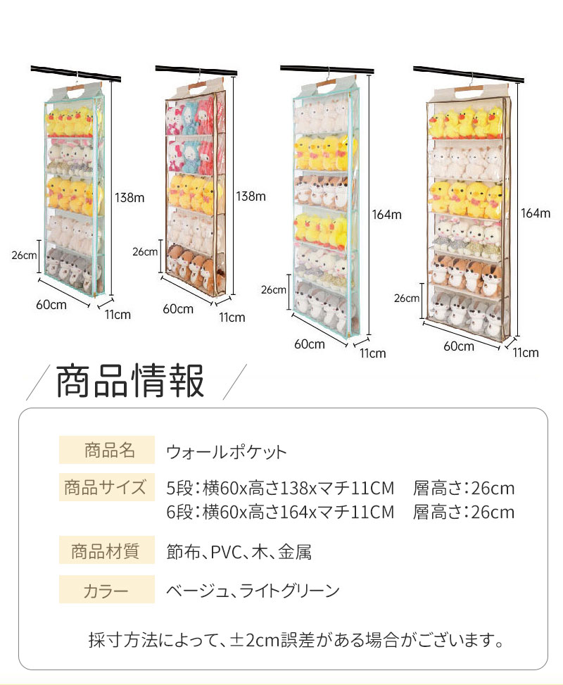 \スーパーsale割引500円クーポン利用可能/ぬいぐるみウォールポケット ウォールポケット 5段 6段収納ケース ディスプレイ コレクションケース 収納ボックス ぬいぐるみ 収納 見せ コレクション