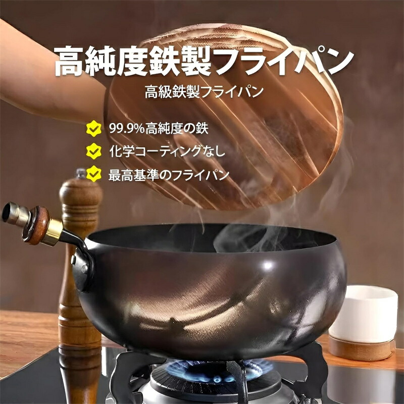 純鉄製で化学コーティングを一切使用していないため、調理時に有害物質を発生させる心配がありません。安全な調理環境を提供するとともに、環境保護にも配慮したエコフレンドリーな調理器具です。