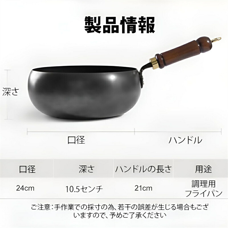 フライパン 鉄鍋 中華鍋 鉄24cm 28cmフライパン 鉄手作り鉄鍋 焦げ付かない 伝統鉄鍋 焦げ付き防止 軽量設計 省エネ ガス代節約 錆びない仕様 IH対応 化学コーティング無添加 野菜炒 ガス