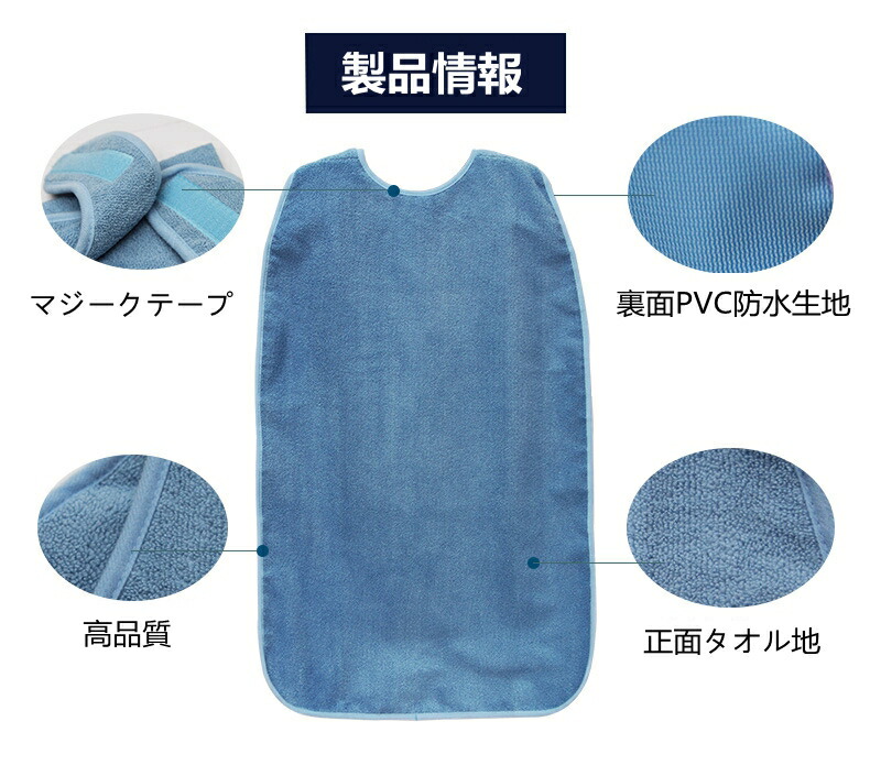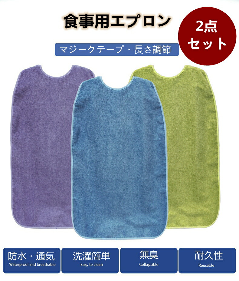 食事用エプロン 2点セット 介護 防水 パープル+グリーン パープル+ブルー グリーン+ブルー