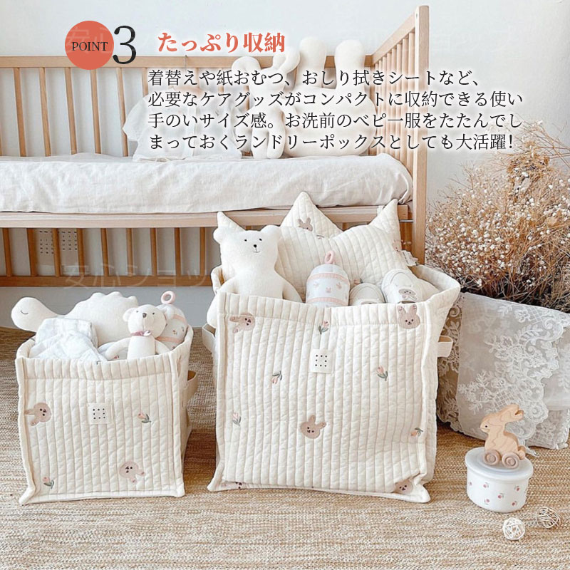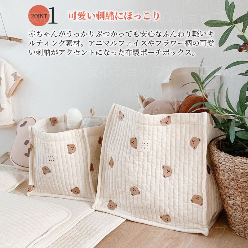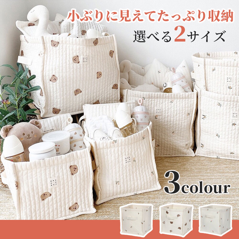 おもちゃ収納 キルティング 収納 ボッ オリーブ くま チューリップ S(25x25cm) L(35x35cm)
