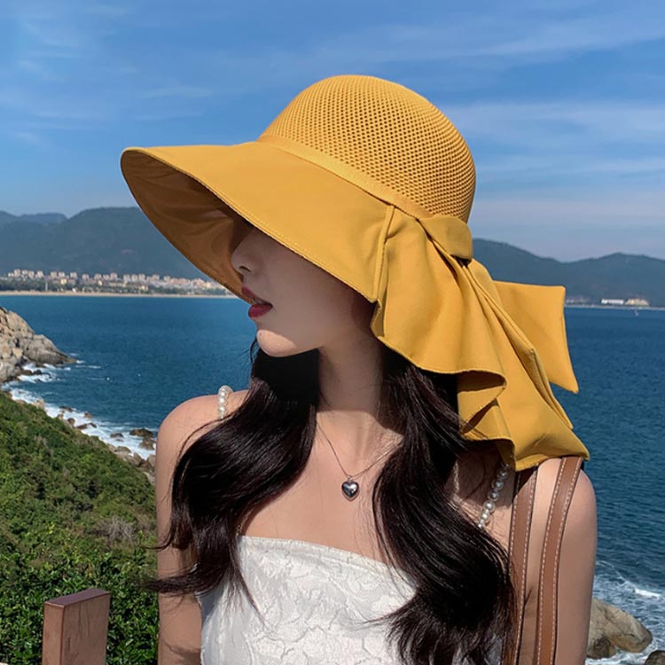 首の後ろ 夏 おしゃれ 大きめ リボン 帽子 レディース帽子 ハット 新登場! イエロー ブラック ベージュ ピンク キャメル