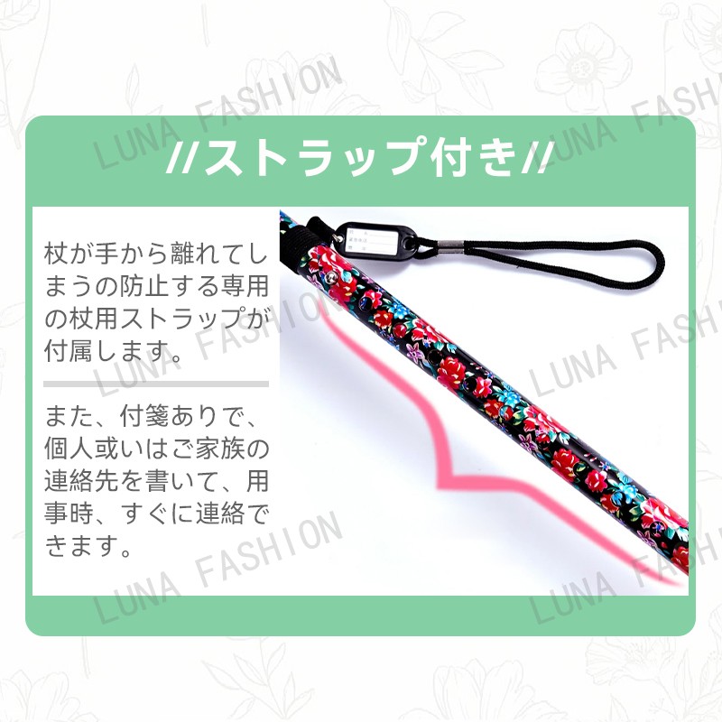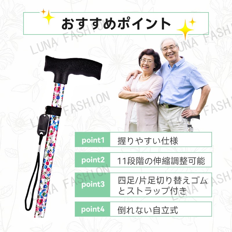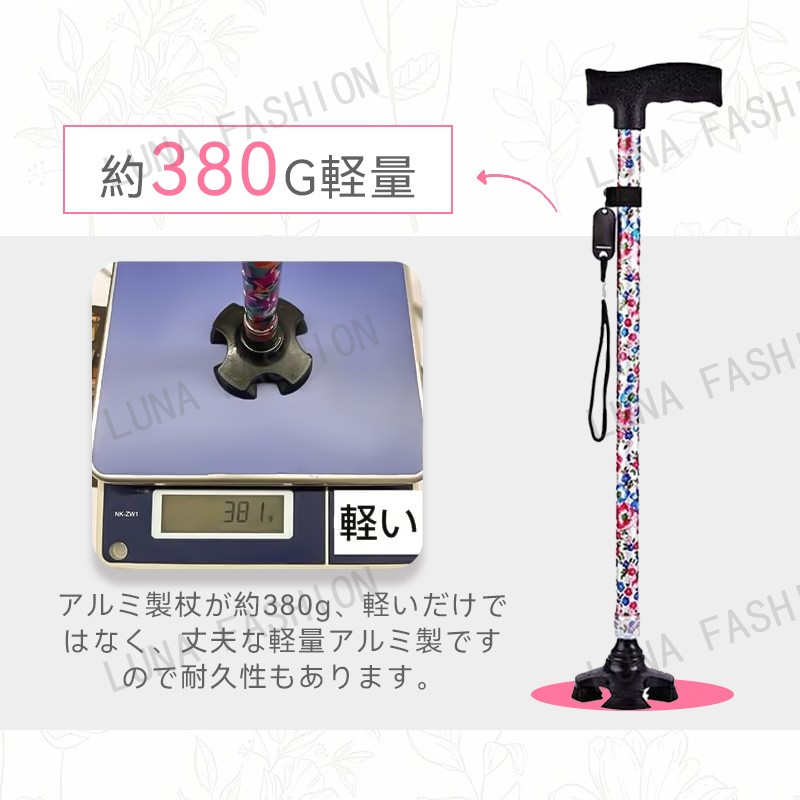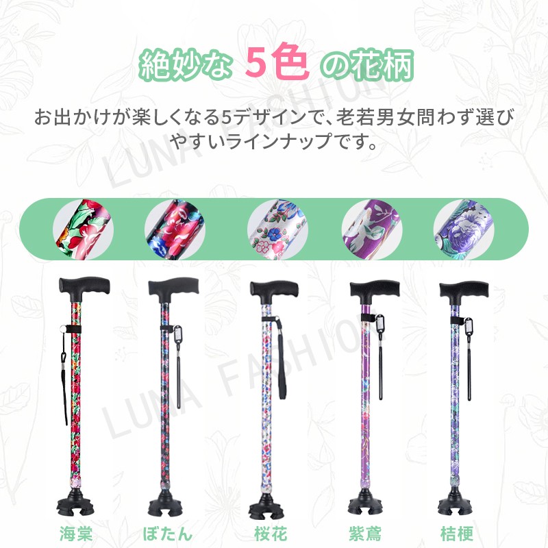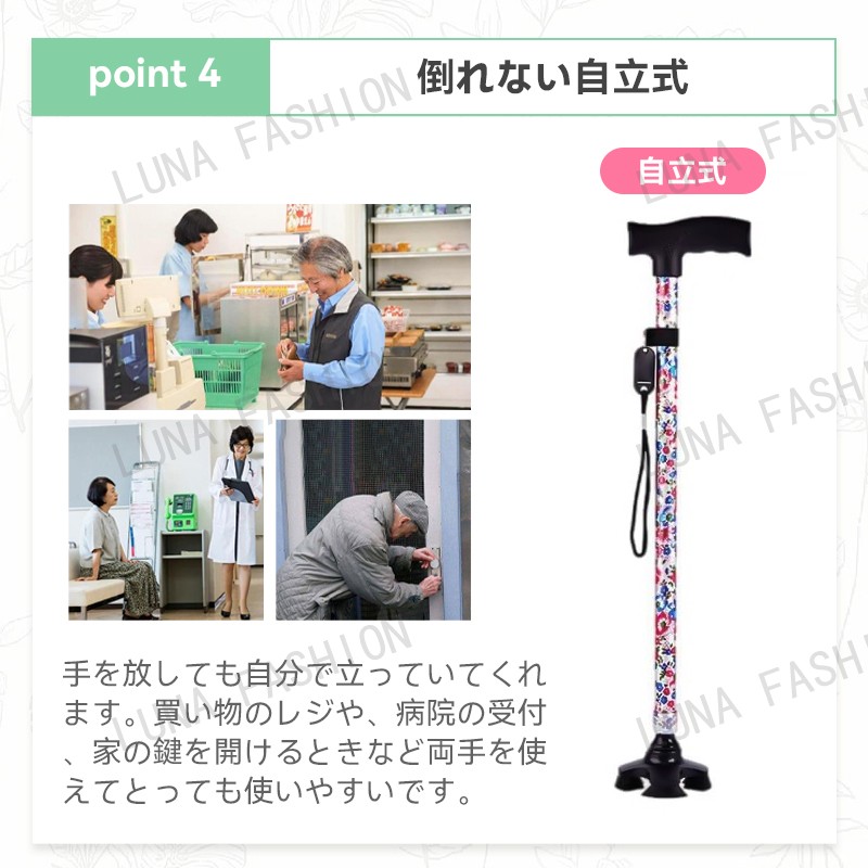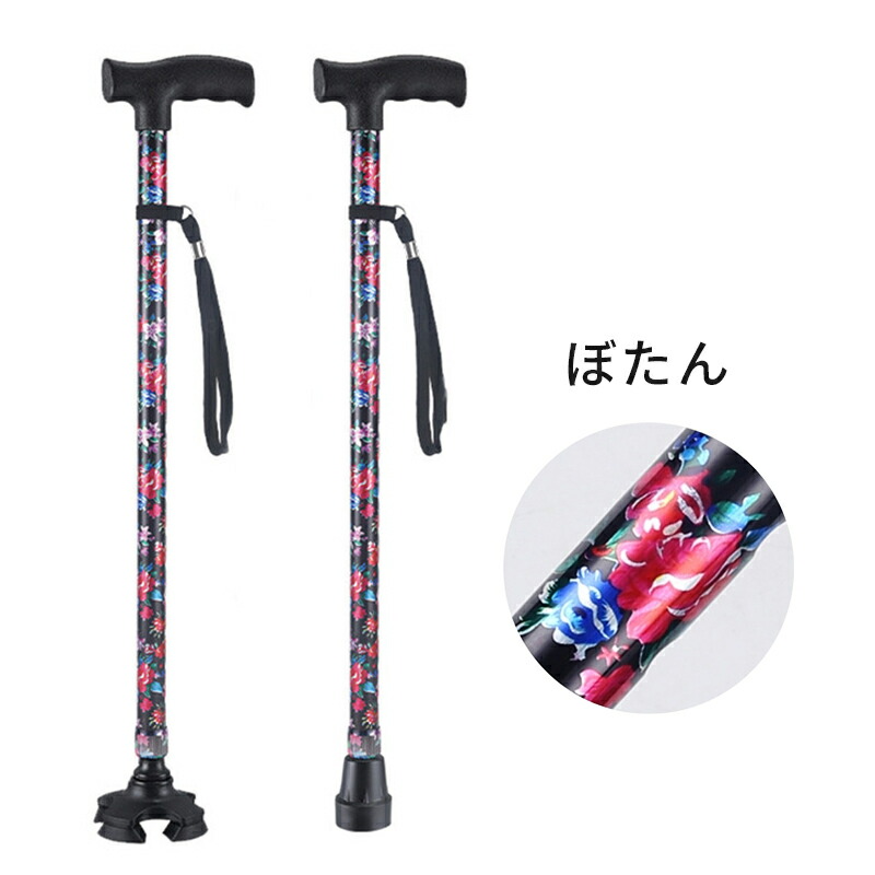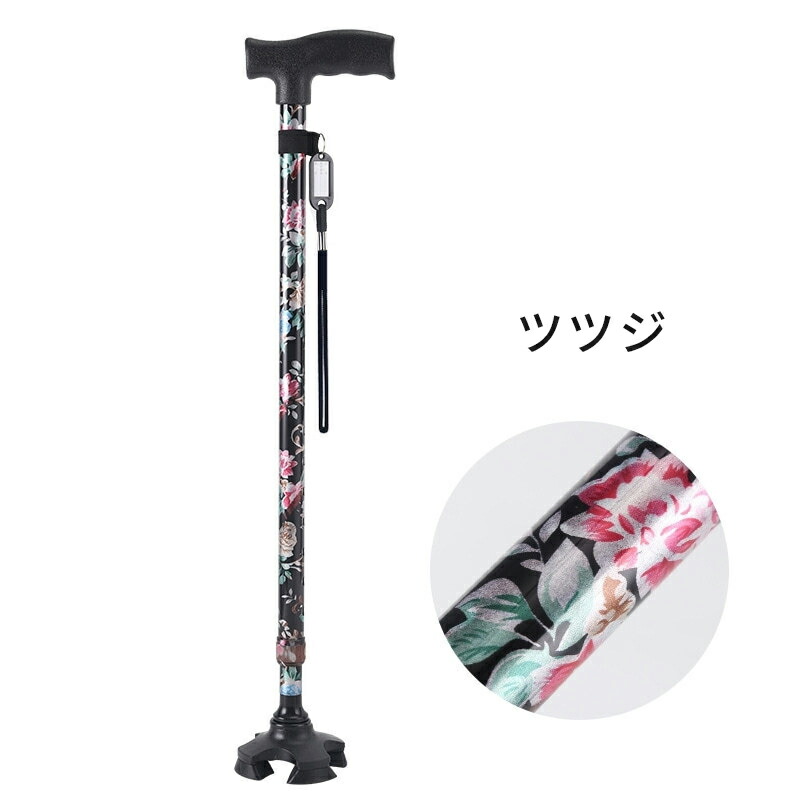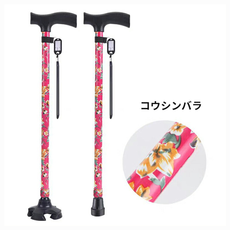 \スーパーSALE割引クーポン利用可能 9.11迄/杖 自立式 軽量 女性用 つえ 介護 ステッキ おしゃれ 花柄 伸縮 伸縮式 自立杖 歩行補助 長さ調節 補助 レディース 父 折り畳み不可