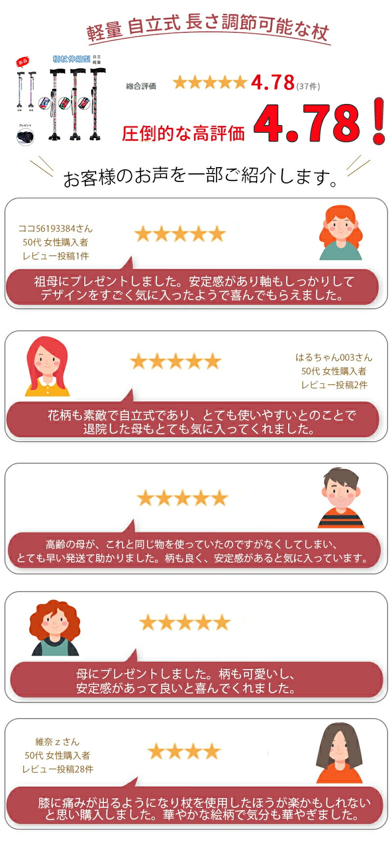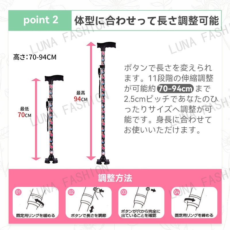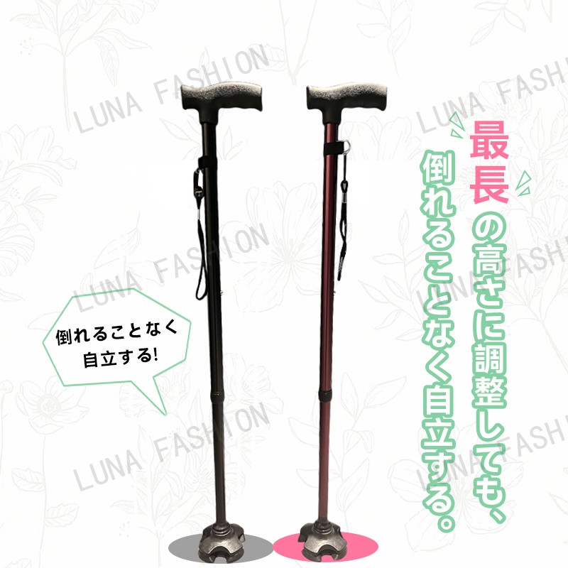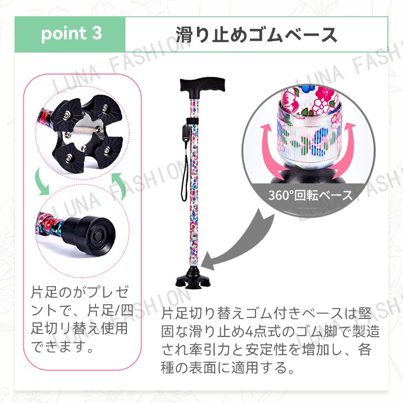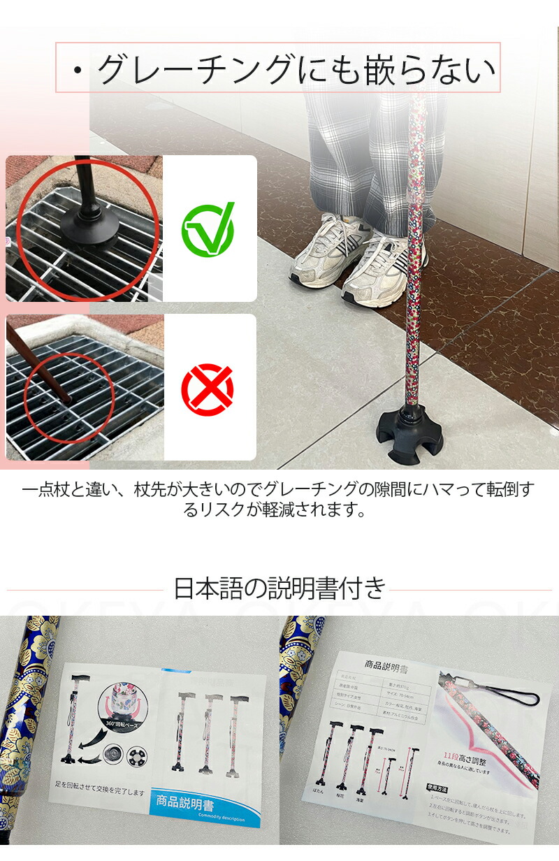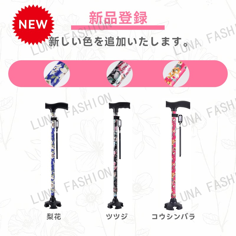 \スーパーSALE割引クーポン利用可能 9.11迄/杖 自立式 軽量 女性用 つえ 介護 ステッキ おしゃれ 花柄 伸縮 伸縮式 自立杖 歩行補助 長さ調節 補助 レディース 父 折り畳み不可