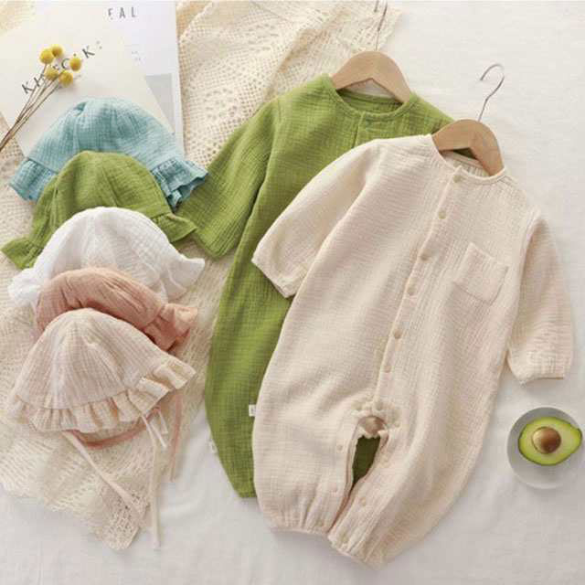 ロンパース 帽子付き 2点セット ベビ キッズ ベビー マタニティ 特集 ホワイト ベージュ ブラウン ブルー グリーン 66 73 80 90