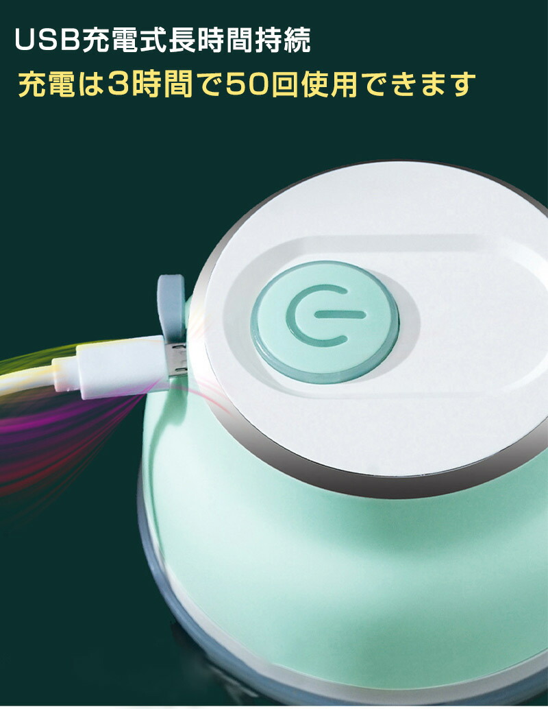 USB充電式で3時間充電するだけで50回も使えます。充電ケーブルの取り外しができ上、コンパクトのため収納性が非常に高いです。