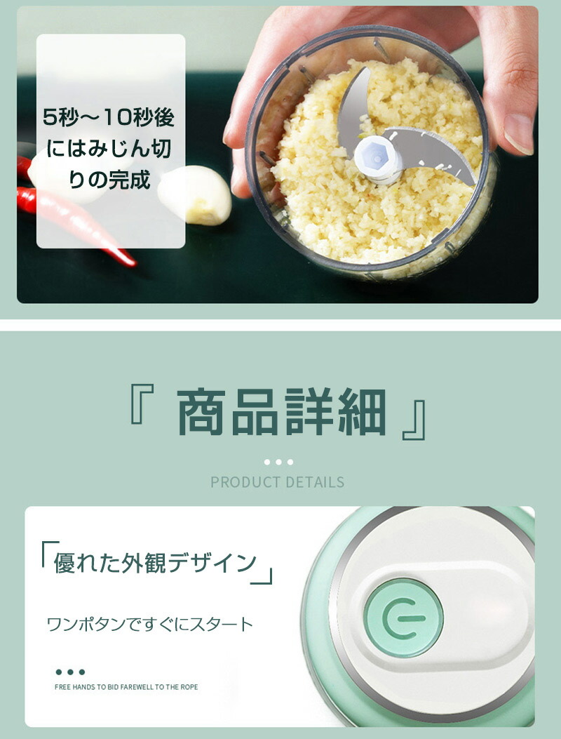 切り器 電動 フードプロセッサー小型 電動みじん切り器 コードレス 3枚刃 キッチン用品 下ごしらえ 簡単 みじん切り みじん切り器 ぶんぶんチョッパー ニンニクつぶし器 チョッパー