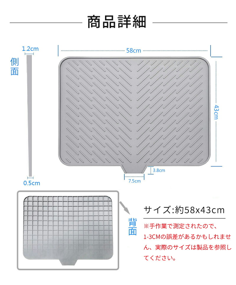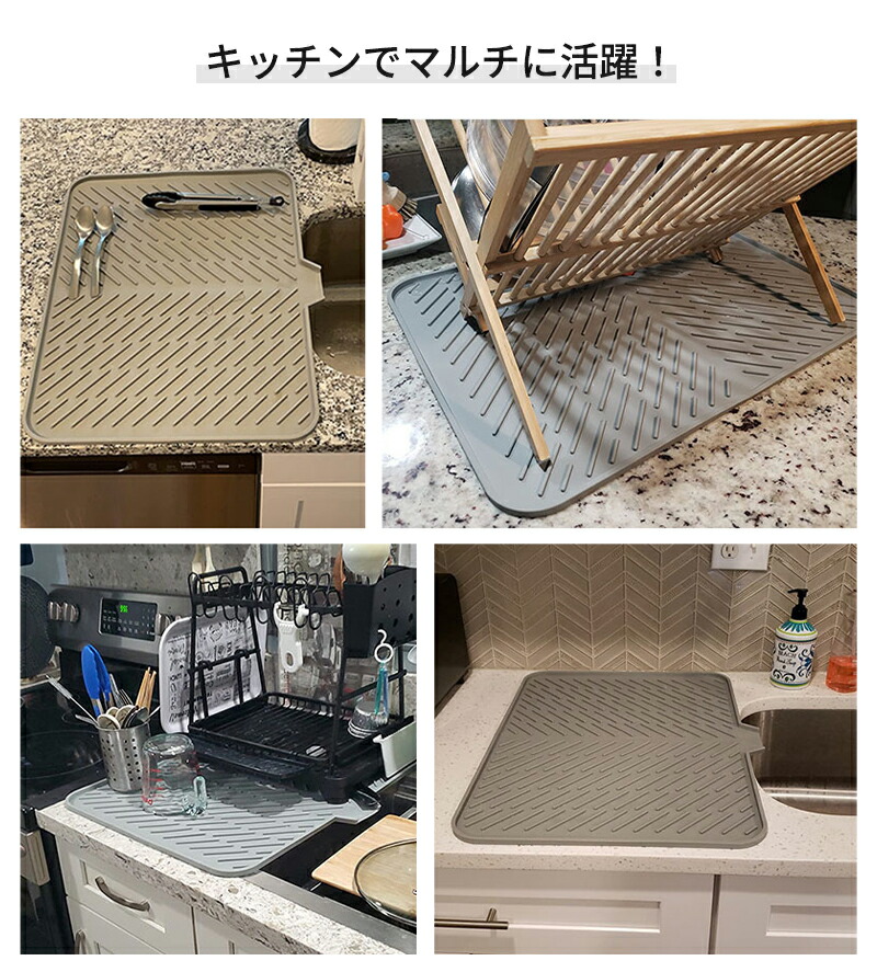 水切りマット シリコン製 水切りトレー 水まわり用品 水切りネット 水切り袋 早い者勝ち グレー ブラック