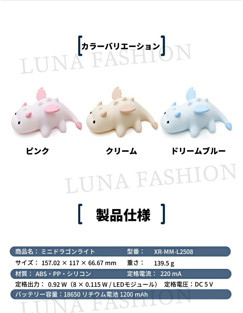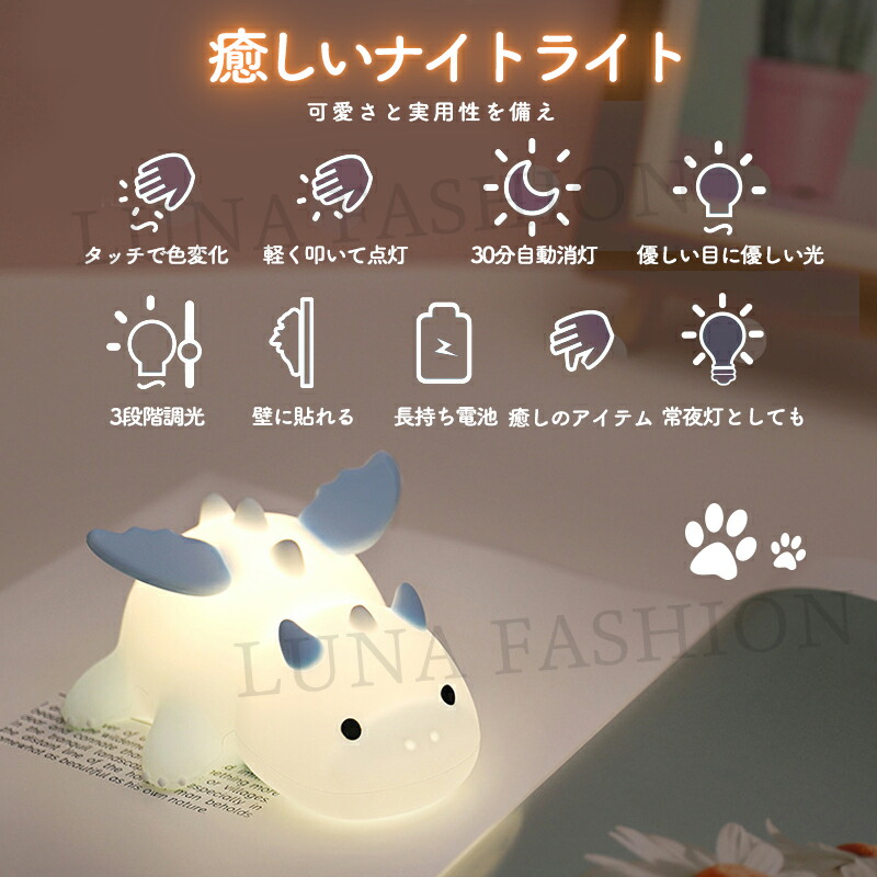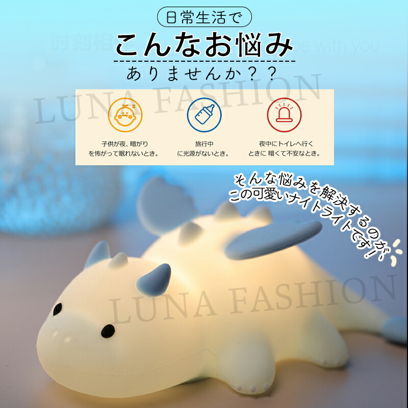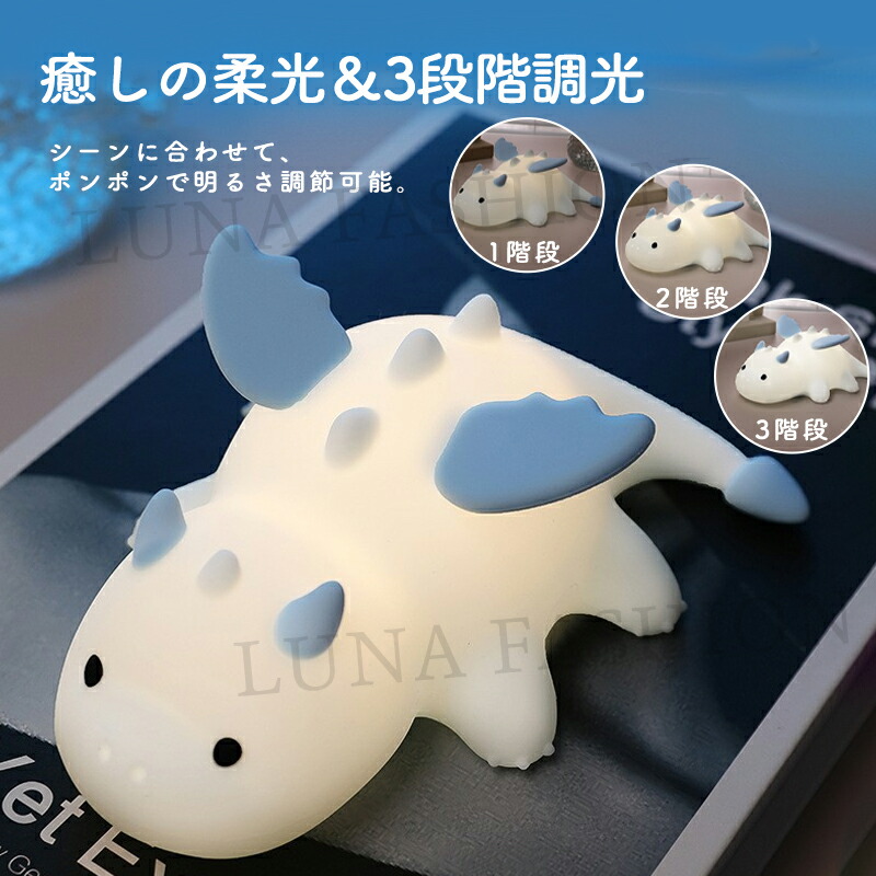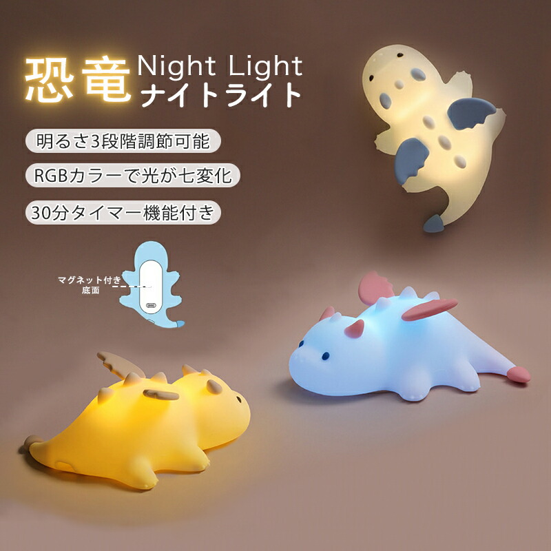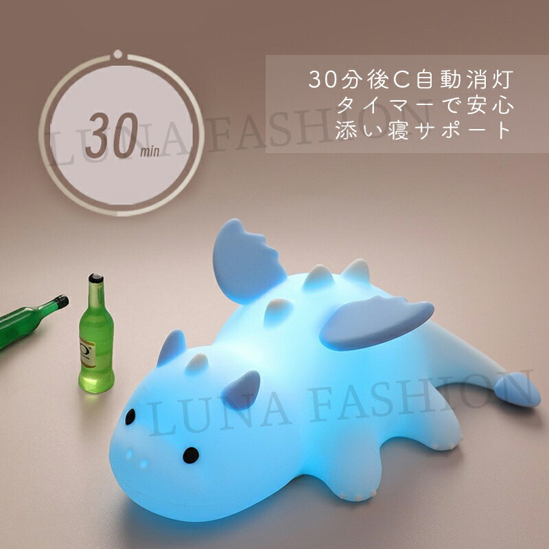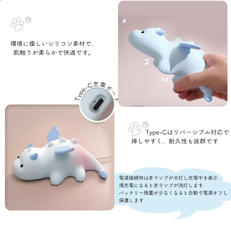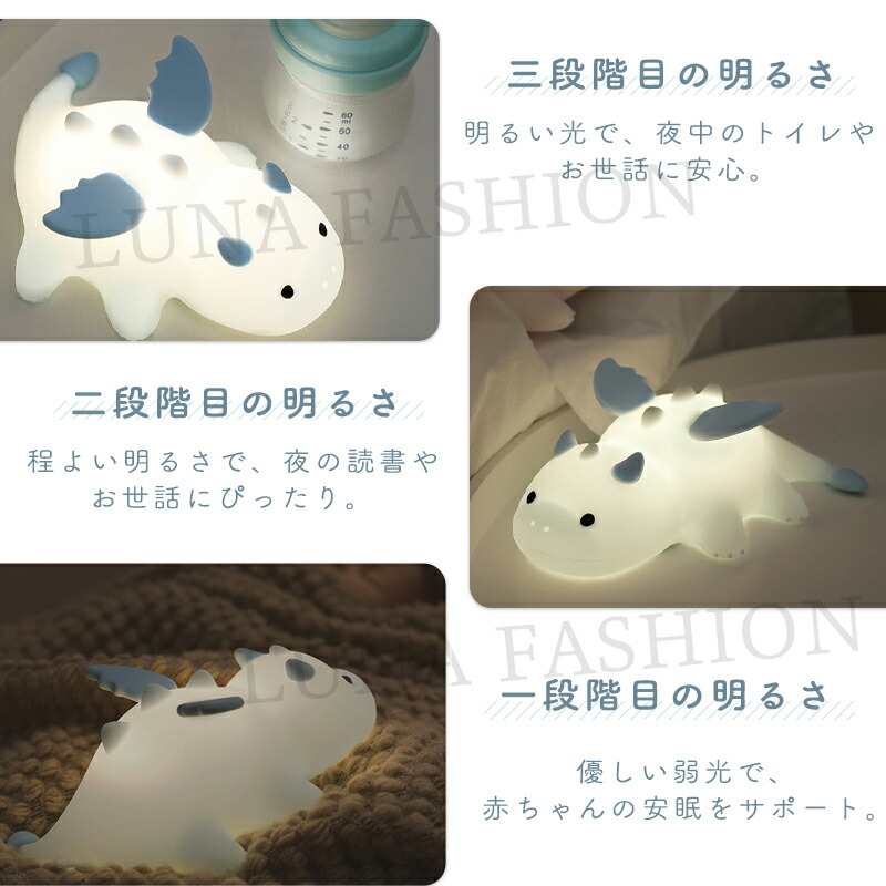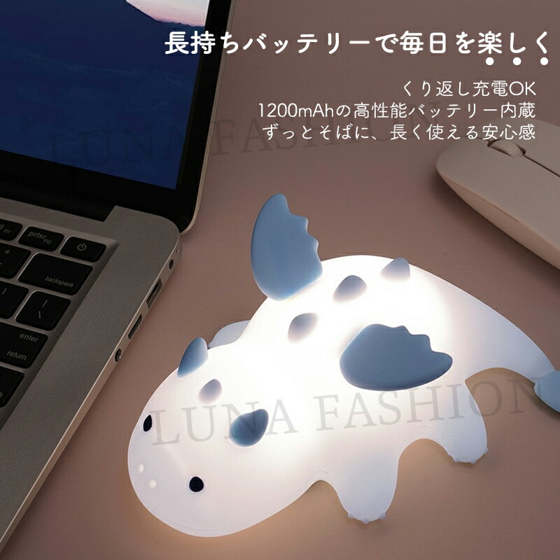 ナイトライト ベッドサイドランプ 恐竜 クリーム ピンク ドリームブルー