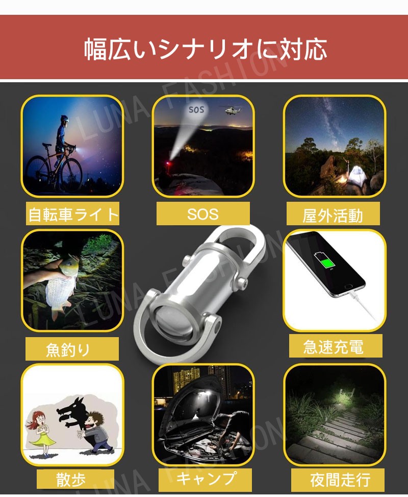 ミニ懐中電灯 LEDキーチェーンライト スポーツ アウトドア 続々入荷中 ブラック シルバー 1 2 3