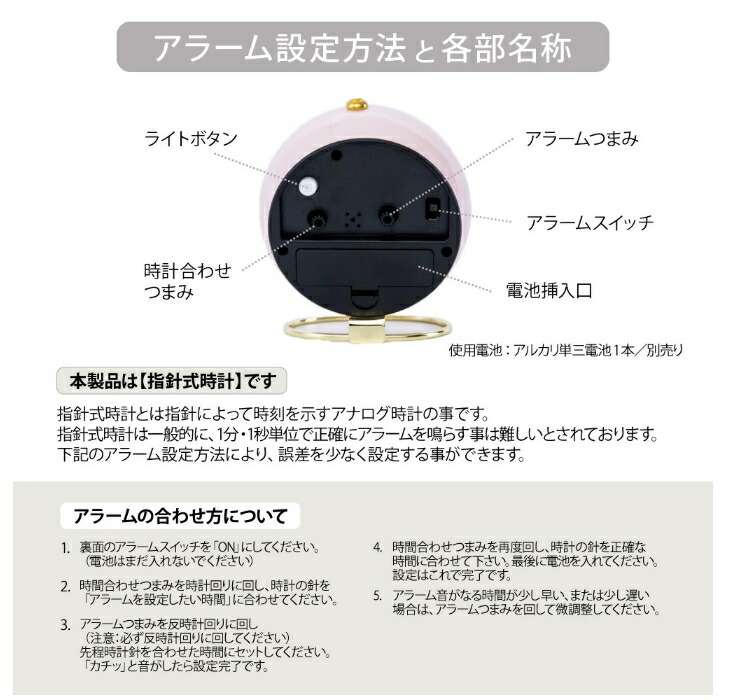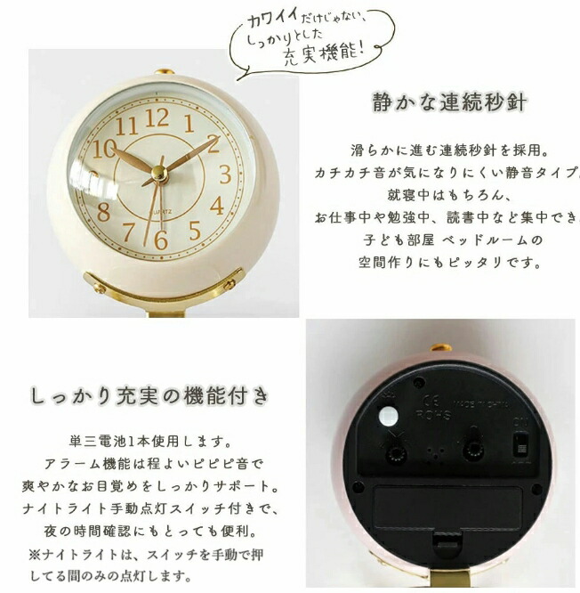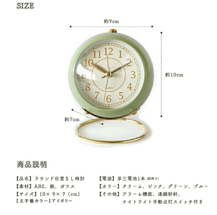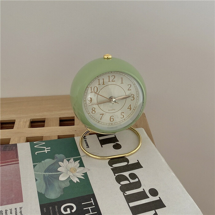 目覚まし時計 置き時計 小さめで、丸い グリーン ブルー ピンク ベージュ ブラック