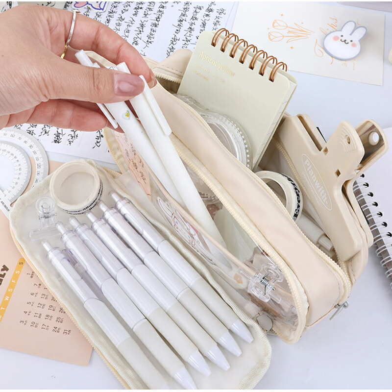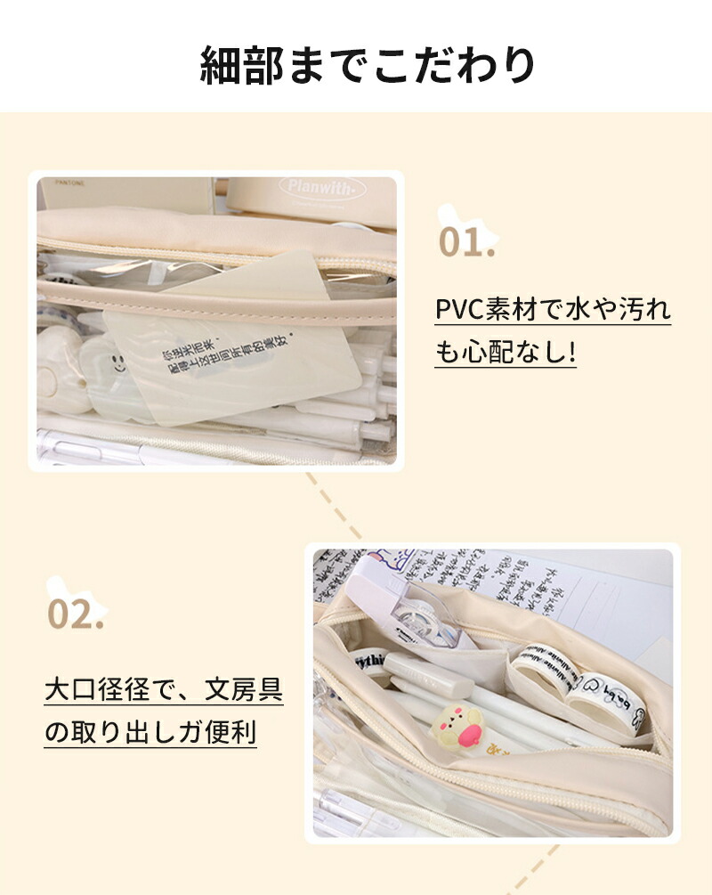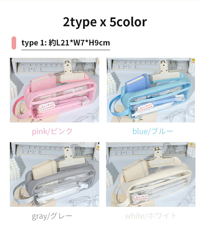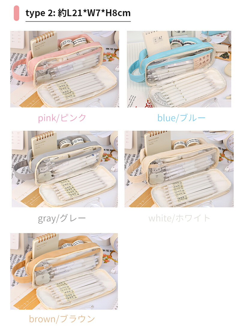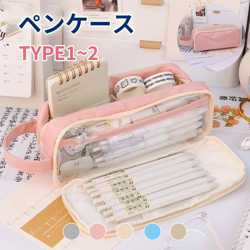 ペンケース 大容量 クリアペンポーチ 日用品雑貨 文房具 手芸 通販 ホワイト グレー ピンク ブルー ブラウン type1 type2