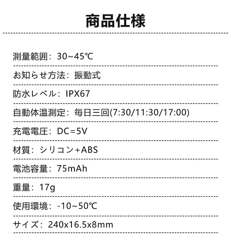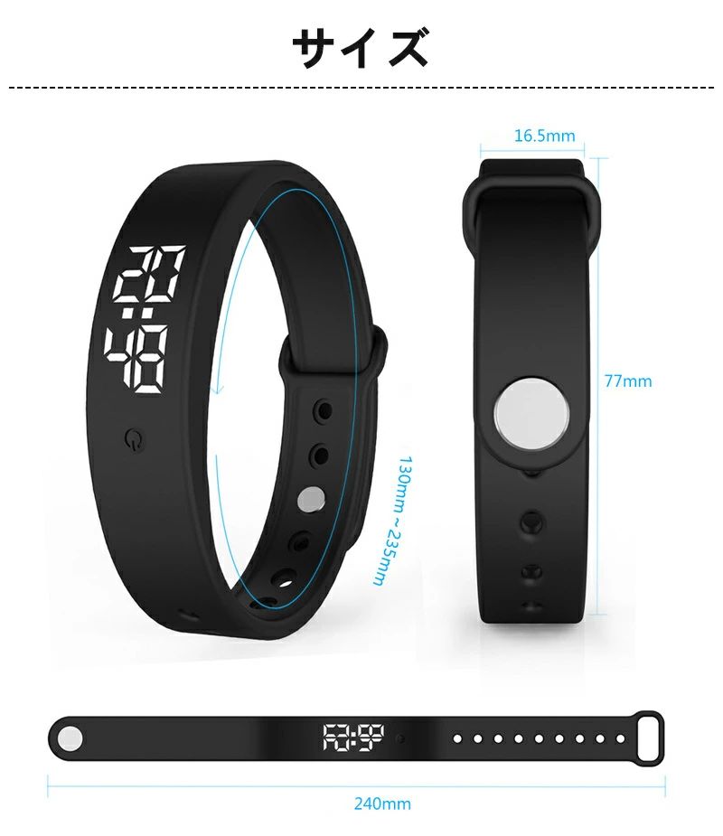 ・サイズ:本体約240X16X8mm、バンド調整可能