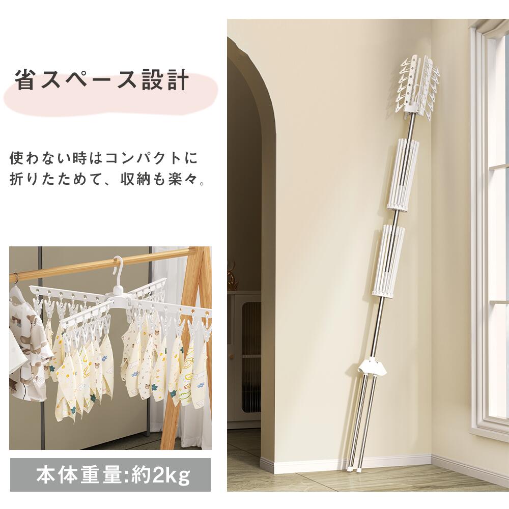 ステンレス 伸縮式多機能布団干し 洗濯物干し 折りたたみ ハンガー掛け付き 折り畳み 組み立て簡単 物干しスタンド ダブルバータイプ 大容量 コンパクト 屋内 物干しハンガー アイリスオ 伸縮