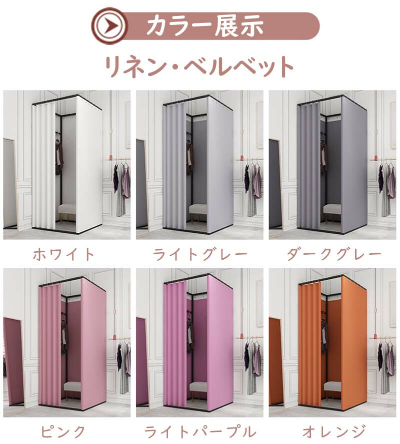 フィッティングルーム レール 試着室 リネン・ベルベット 遮光布 ホワイト ライトグレー ダークグレー ピンク ライトパープル オレンジ ダークブルー ネイビー ダークグリーン イエロー コーヒー色 ブラック シルバー ベージュ ワインレッド ブルー パープル ライトグリーン