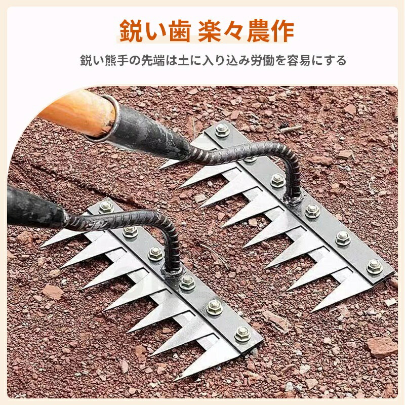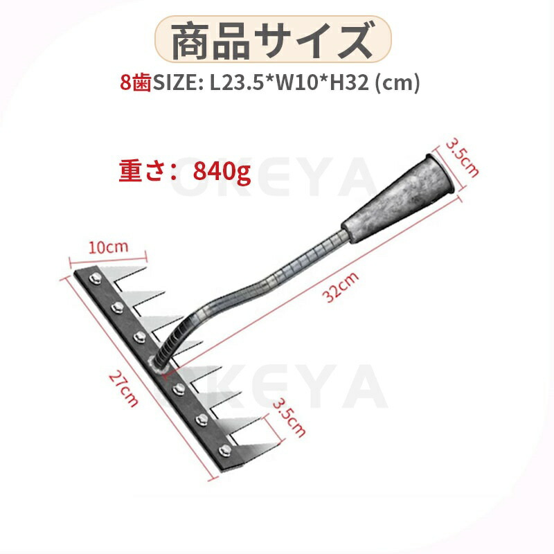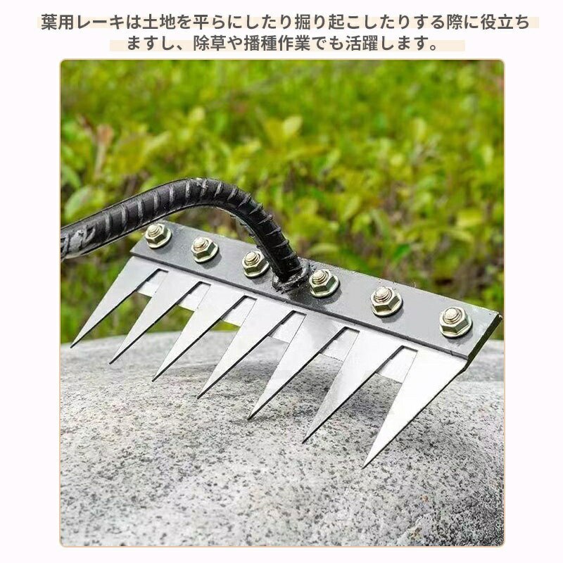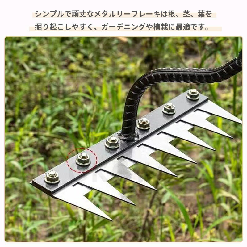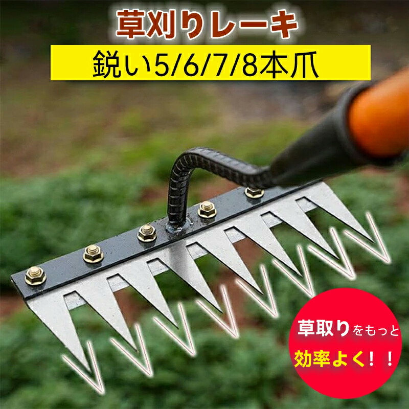 9.11迄/草刈りレーキ 熊手 金属製 5歯 6歯 7歯 8歯 なし 付き(1.2m) 付き(1.4m)