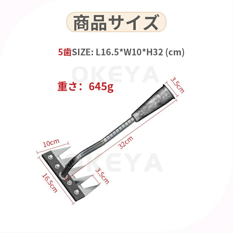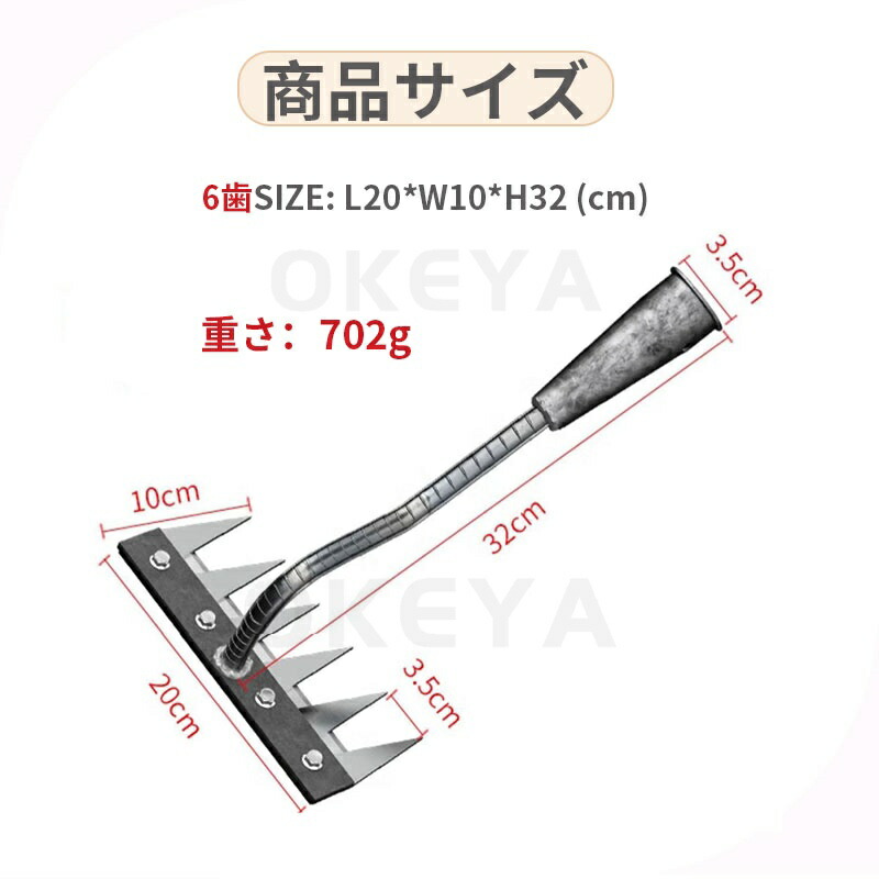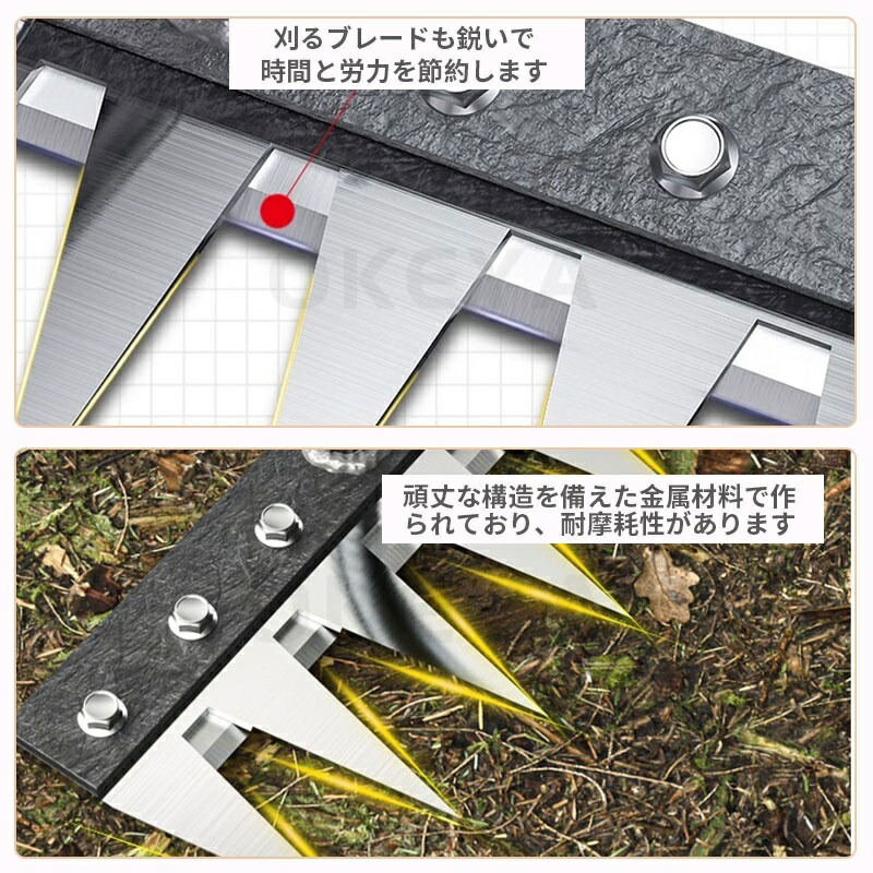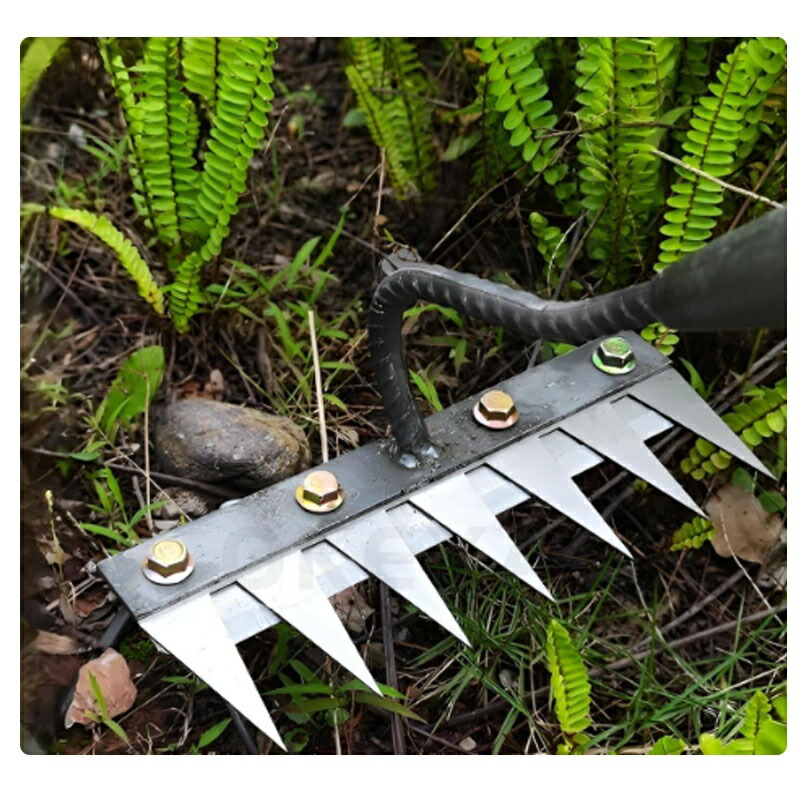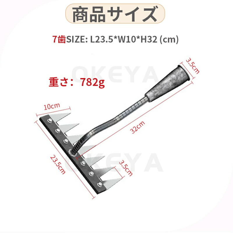 9.11迄/草刈りレーキ 熊手 金属製 5歯 6歯 7歯 8歯 なし 付き(1.2m) 付き(1.4m)