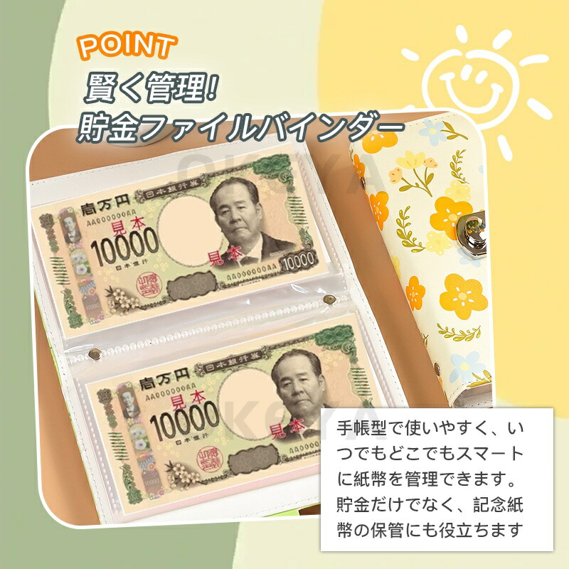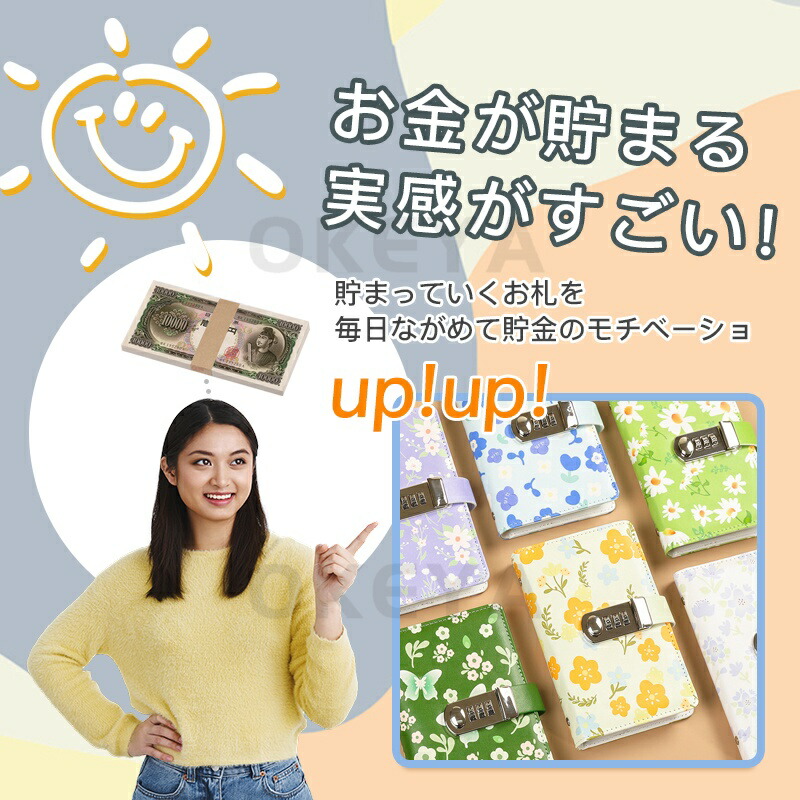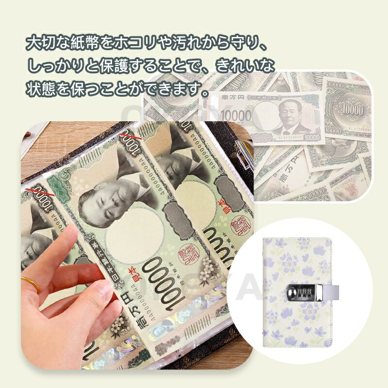\2点目半額クーポン利用可能 9.11迄/お札貯金ファイル ダイヤルロック付き 100万円貯金目標 最大100枚収納 千円札五千円札対応 折らず保存 6色展開 手帳型バインダー 記念紙 PUレザー防水