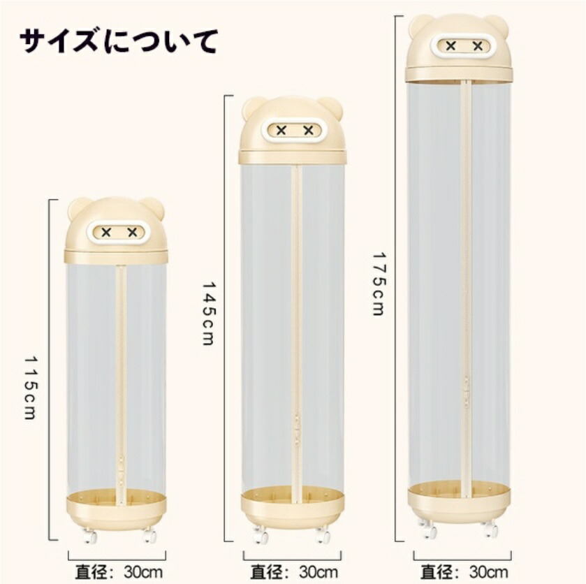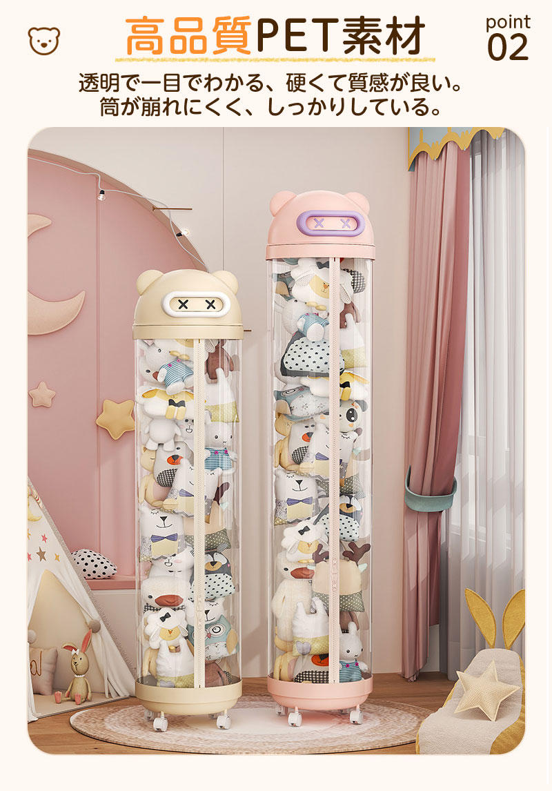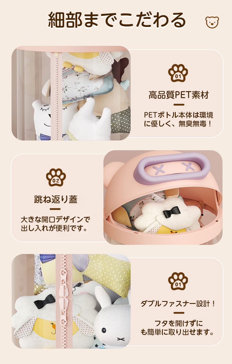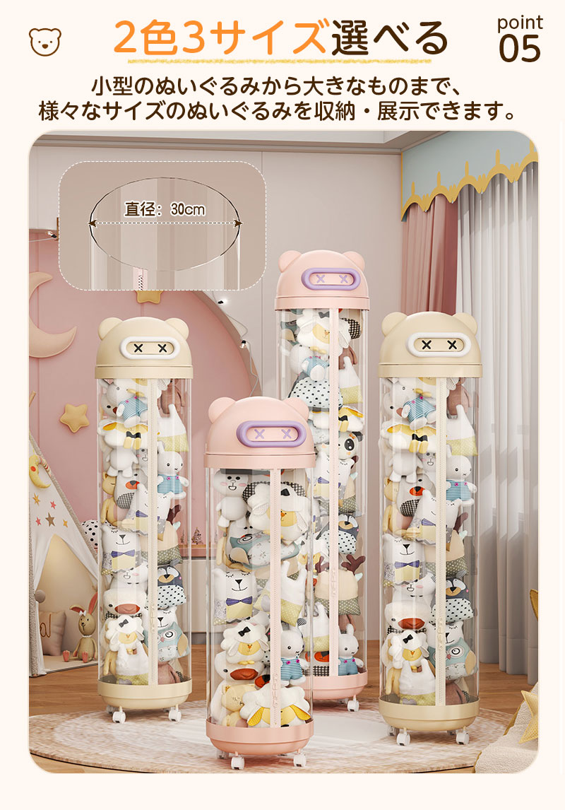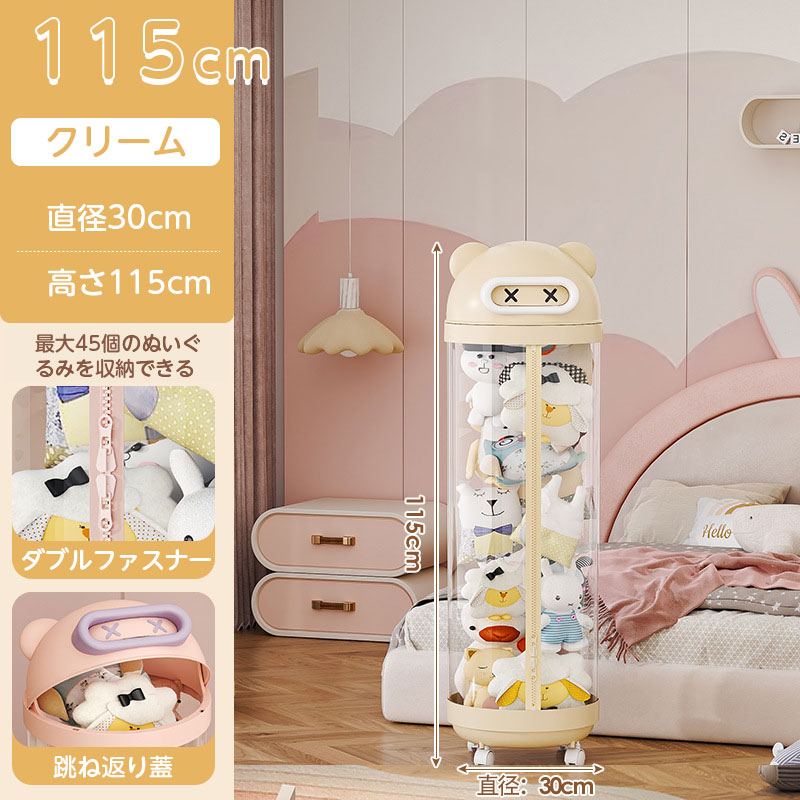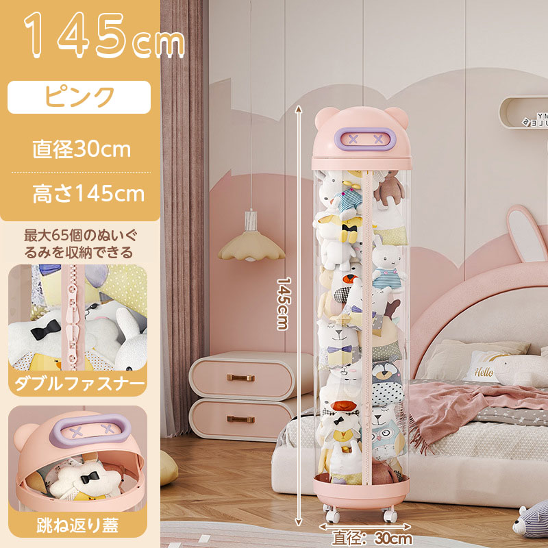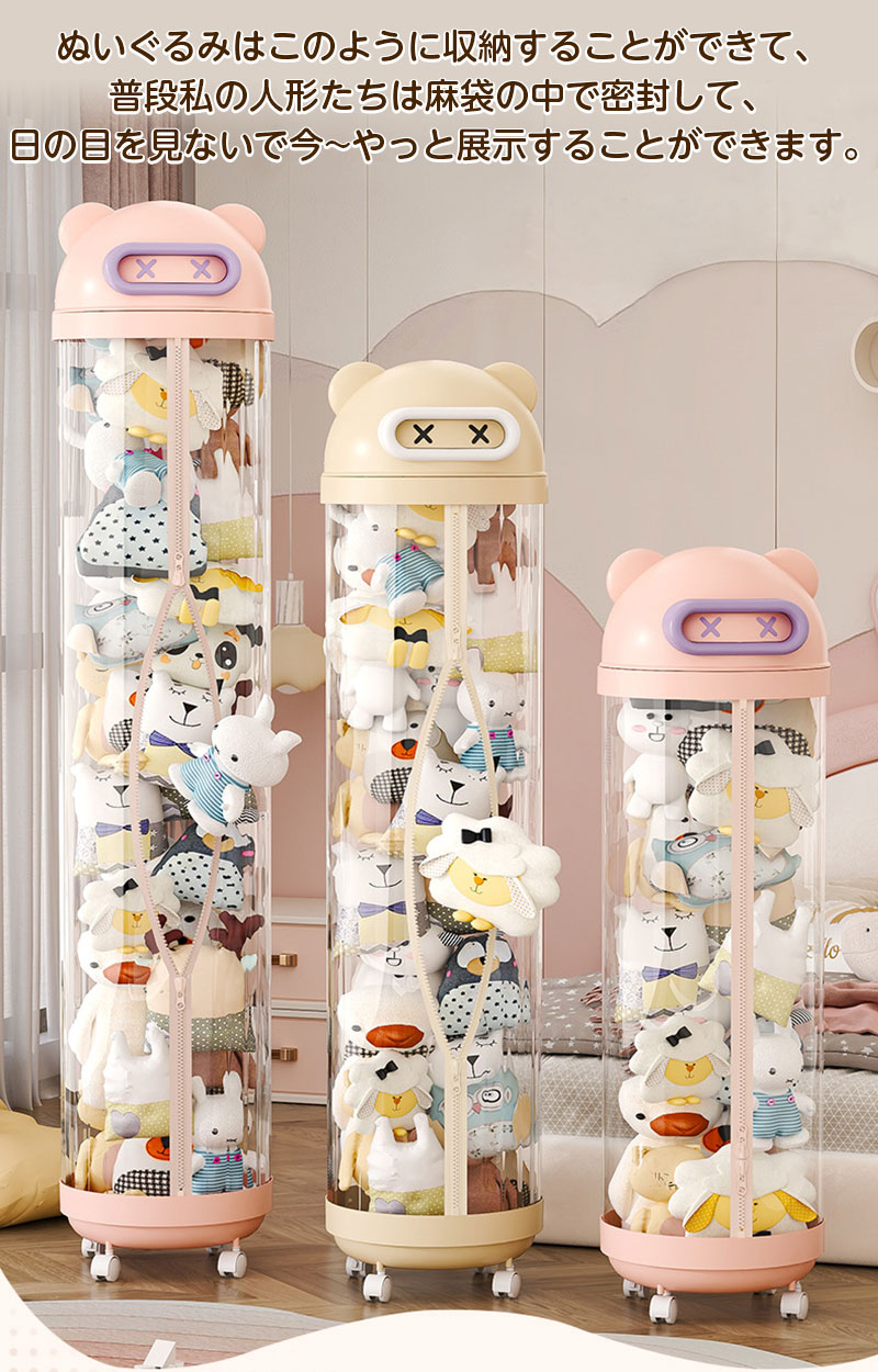 ぬいぐるみ 収納 ジッパータイプ 透明 クリーム ピンク 115cm 145cm 175cm