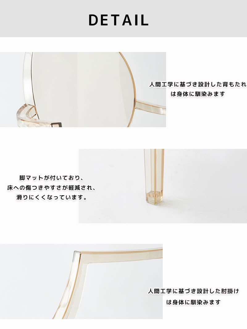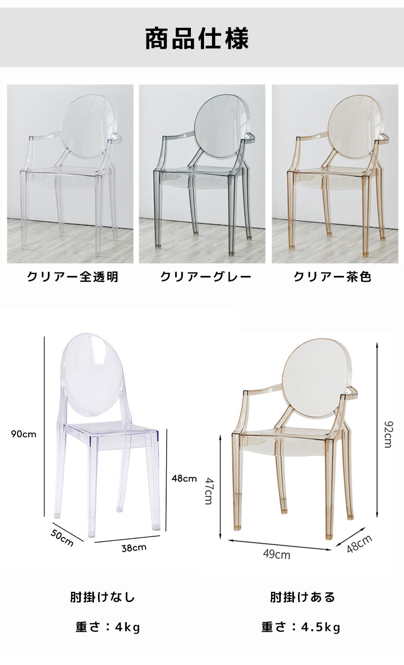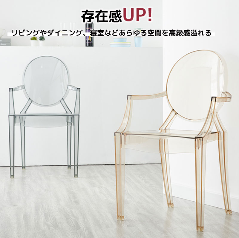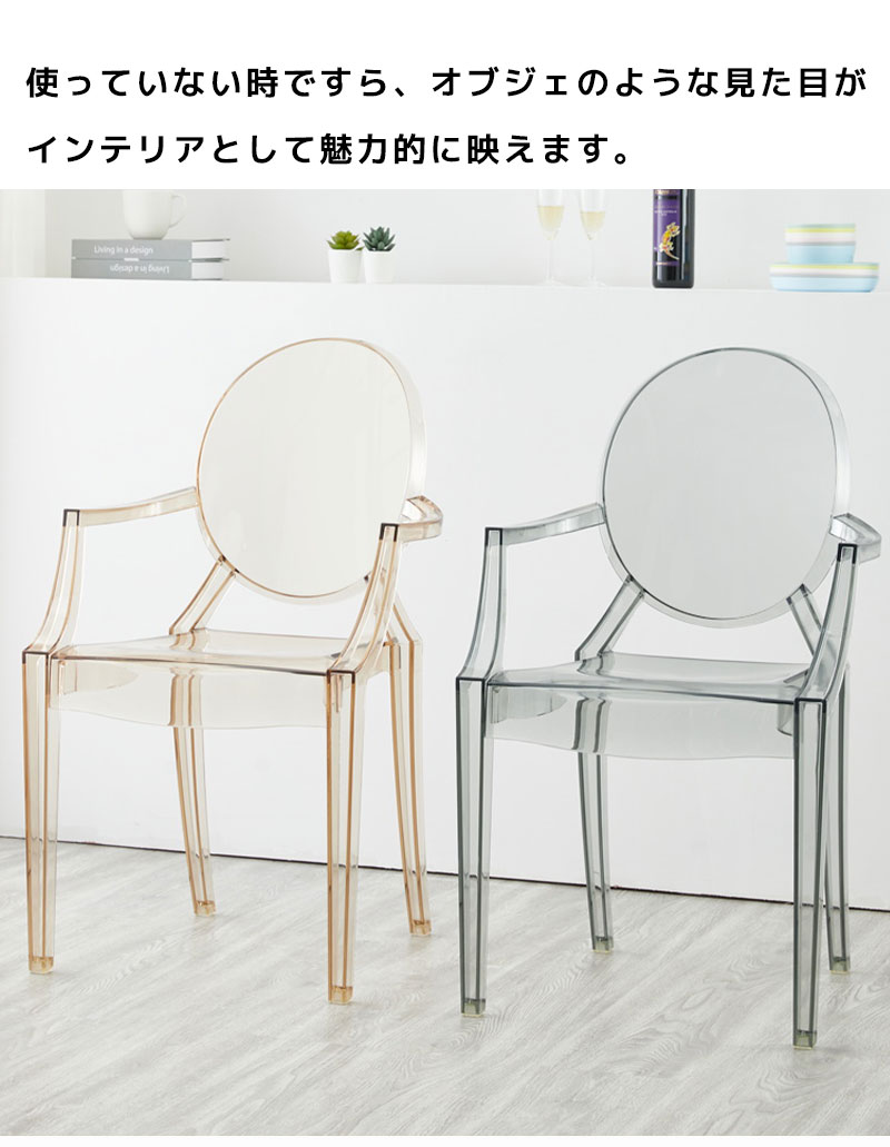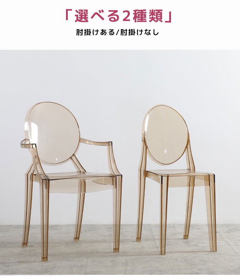 クリアチェア ダイニングチェア 椅子 なし あり クリアー全透明 クリアーグレー クリアー茶色