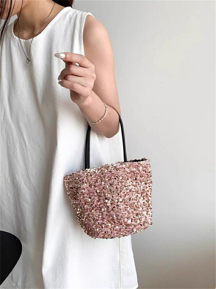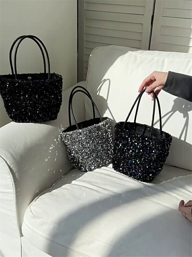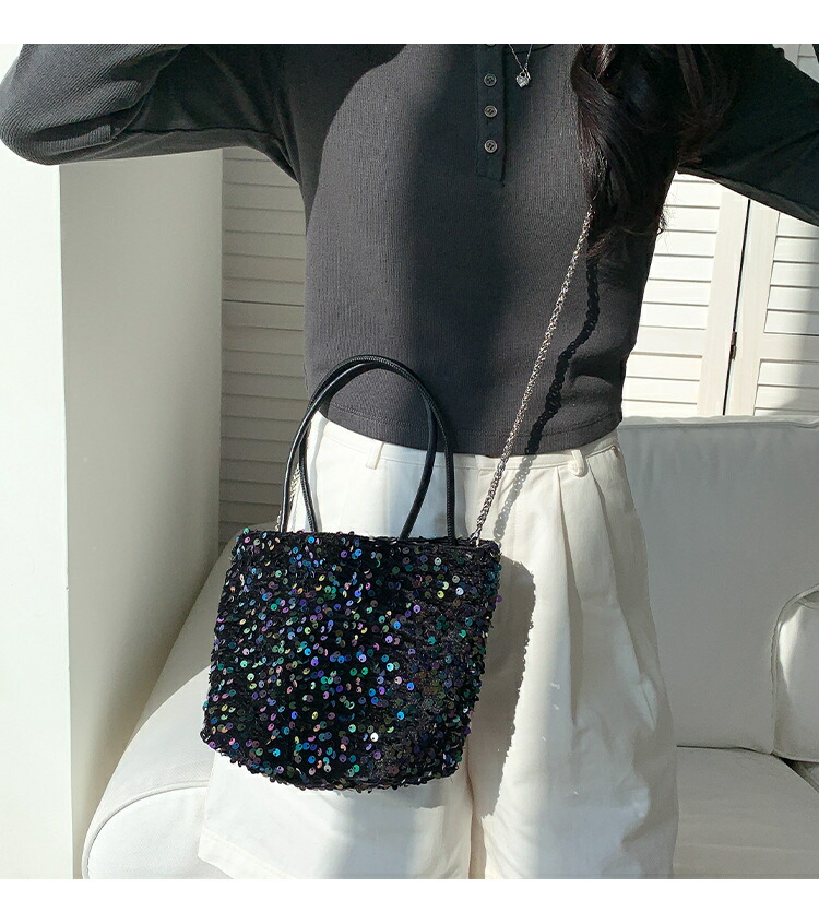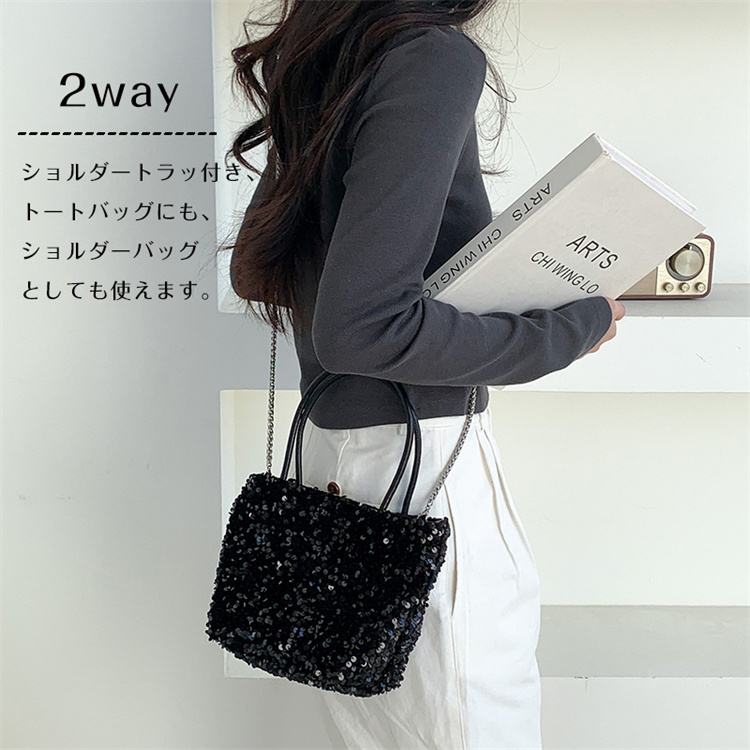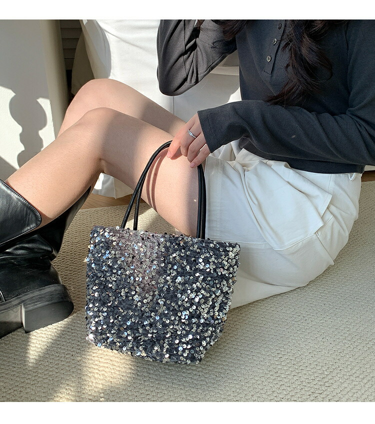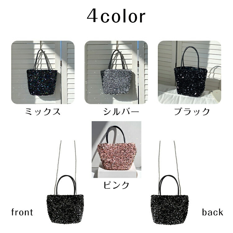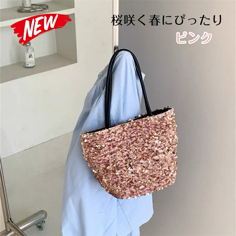 スパンコール バッグ トートバッグ 2 バッグ レディースバッグ トートバッグ 続々登場 ブラック シルバー ミックス ピンク