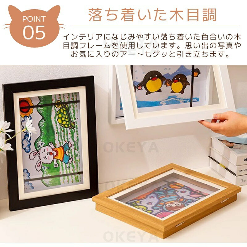 アートフレーム 子供の絵 を飾る 保存 ナチュラル ブラック ホワイト ピンク グリーン 6寸 (10.1×15.2cm) 8寸 (15.2×20.3cm) A4 (21×29.7cm) А3 (29.7×42cm)