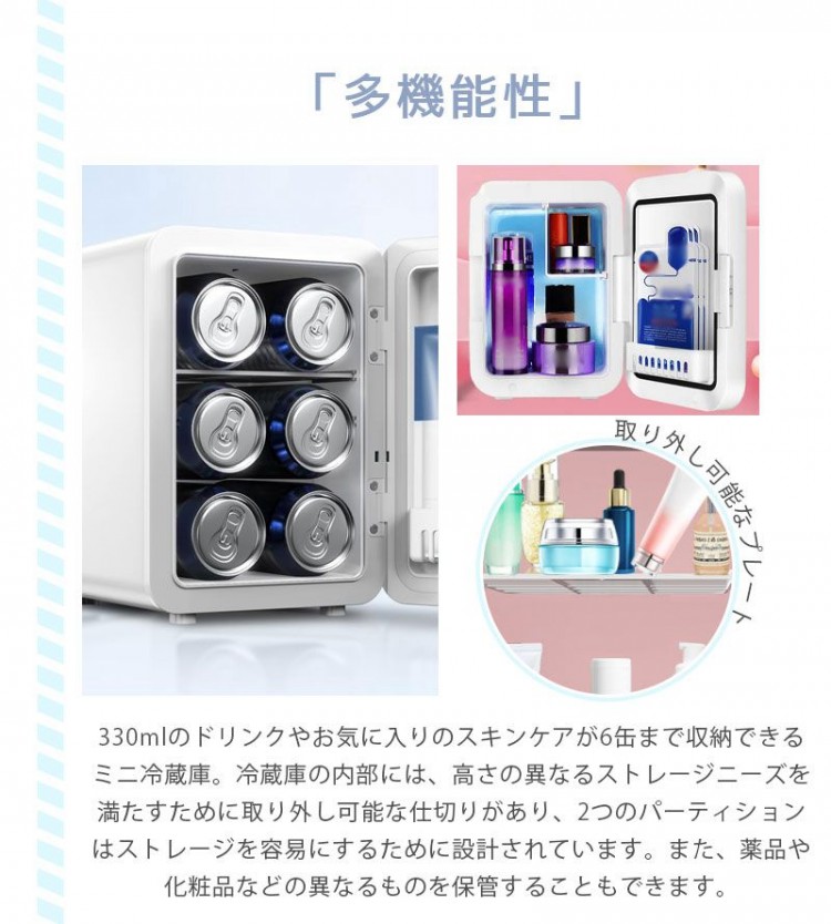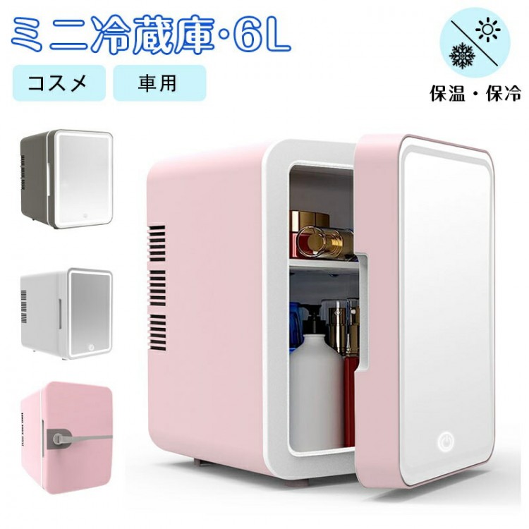 スキンケア冷蔵庫 ミニ冷蔵庫 6L 小 White Pink Grey type1-LED鏡付き type2-ハンドル付き