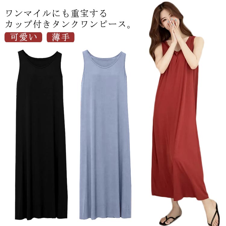 ルームウェア ノースリーブ 薄手 ワン レッド ブラック ブルー M L XL 2XL