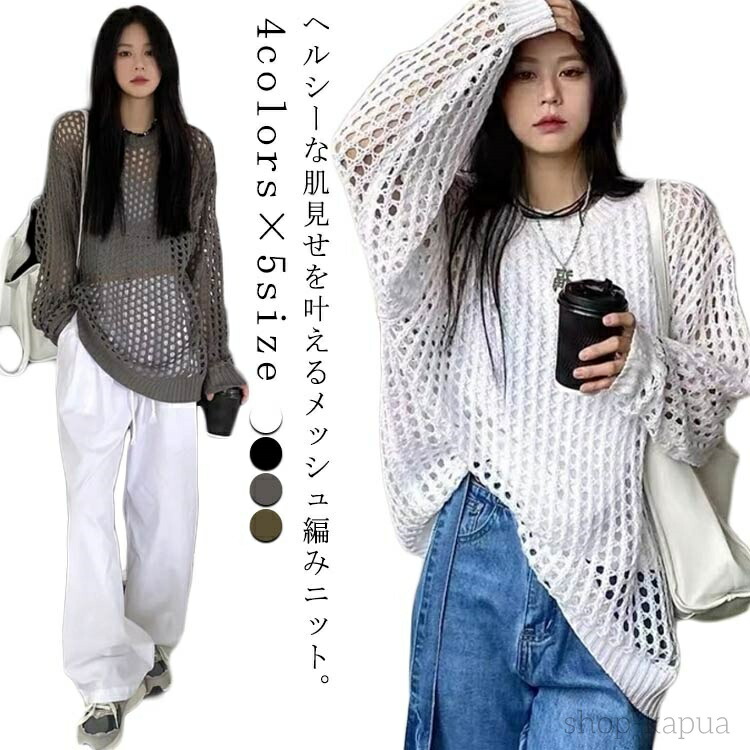 レディース 夏 透かし編み 春夏 透か レディースファッション 特集 ホワイト ブラック グレー グリーン S M L XL 2XL